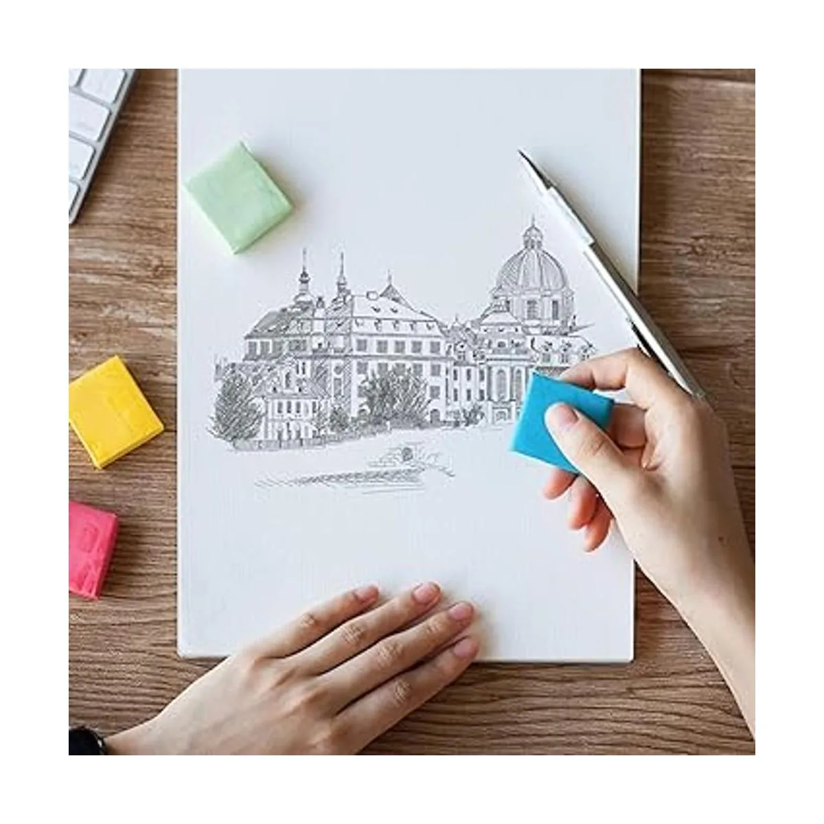 La elección perfecta para artistas, lápices de bocetos, suministros de dibujo. Este borrador es ideal para grafito y lápices de colores que puede corregir y aclarar carbón, lápiz y trabajo pastel