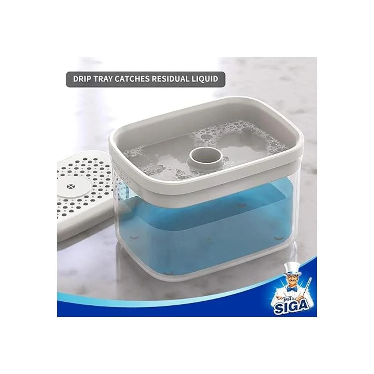 Diseño elegante y moderno: el producto contiene una bandeja de goteo de 2 piezas, bomba dispensadora y organizador transparente de gran capacidad. Diseño simple pero elegante que combina con la decoración de tu cocina de forma natural. El dispensador de jabón MR.SIGA con soporte de esponja no solo es tu asistente doméstico, sino también un gran regalo para tus amigos.
