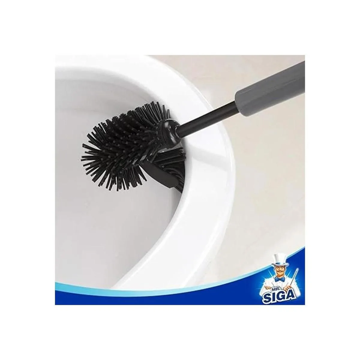 MR.SIGA Toilet Bowl Brush and Holder for Bathroom, NonScratch TPR Bristles, UnderRim Brush Head, Gray & Black, 1 Pack