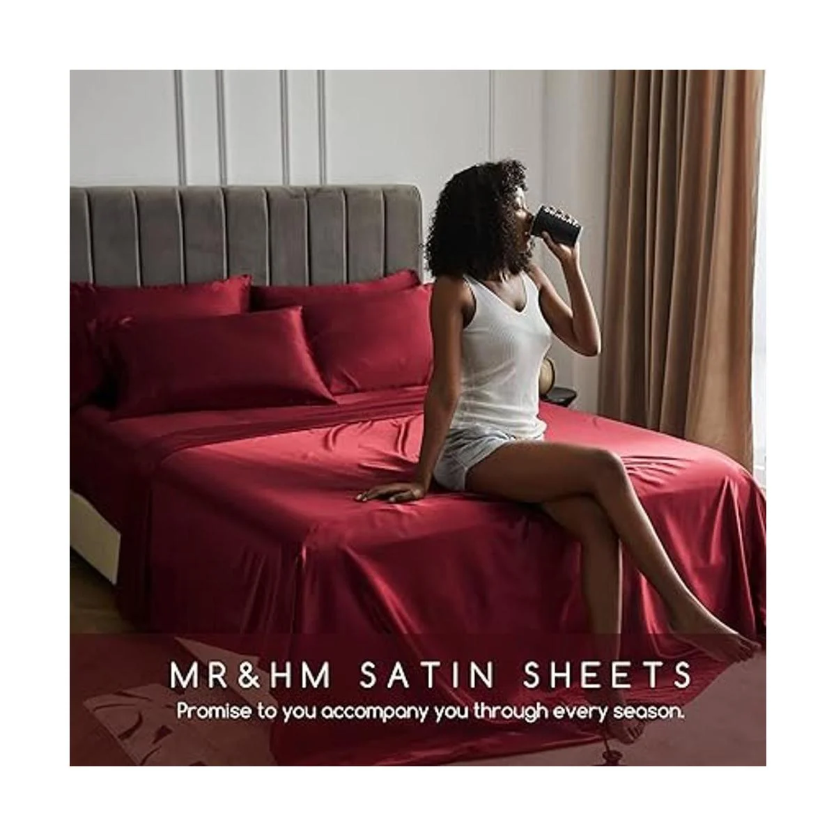 Lujo asequible: en comparación con las sábanas de seda, la tela de satén es más duradera. La tela de seda es fácil de dibujar y hacer bolitas, y nuestra tela de satén utiliza un mayor número para reducir significativamente la posibilidad de pelusas. Las fibras sedosas son ideales para la regulación de la temperatura, transpirables y no sofocantes. Las sábanas de satén MRHM son de alta calidad y extravagantes, que son lujosas a un precio asequible.