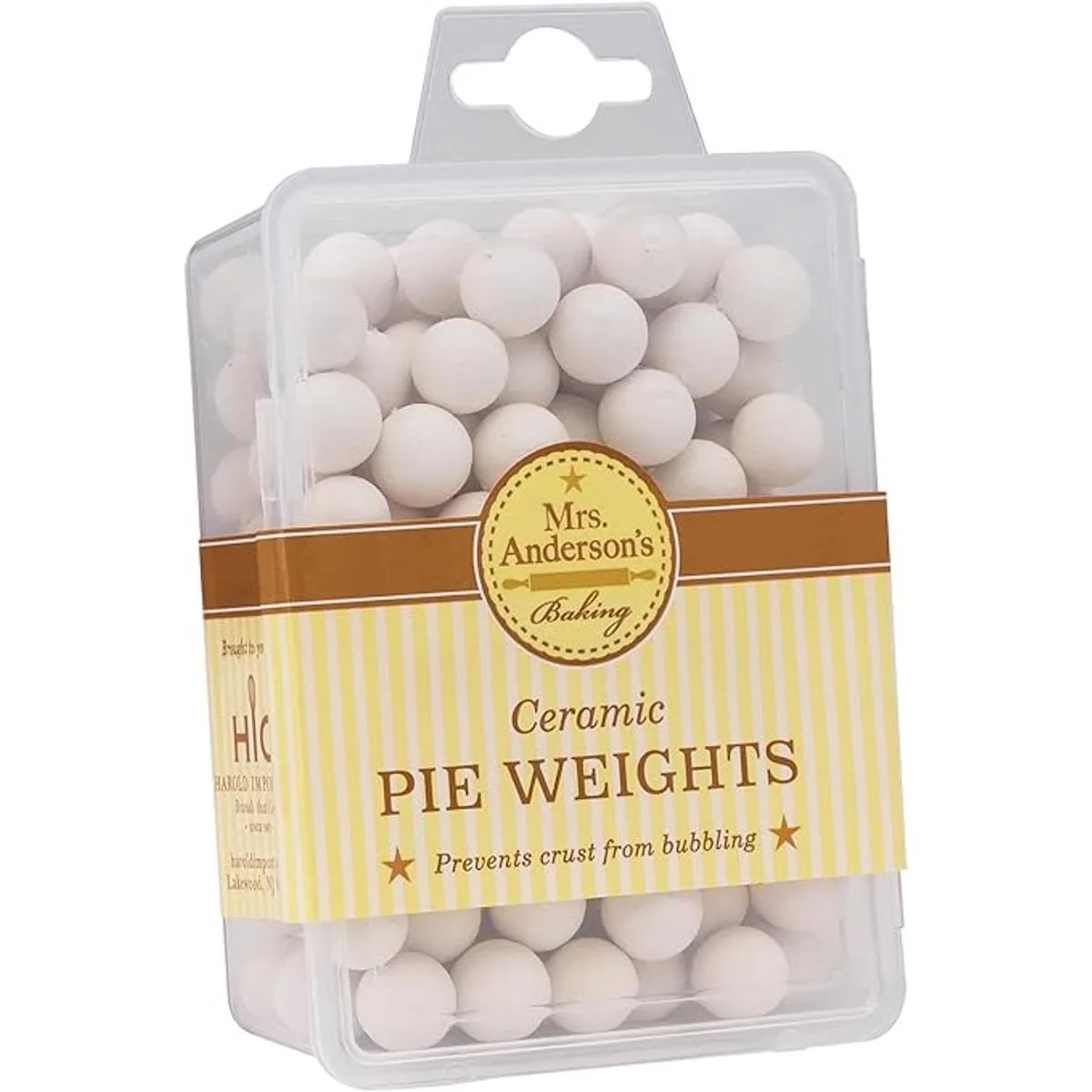 Las pesas de cerámica para tartas de Mrs. Anderson hornean cáscaras vacías, conocidas como horneado ciego, sin que se encojan, hagan burbujas o se abrochen