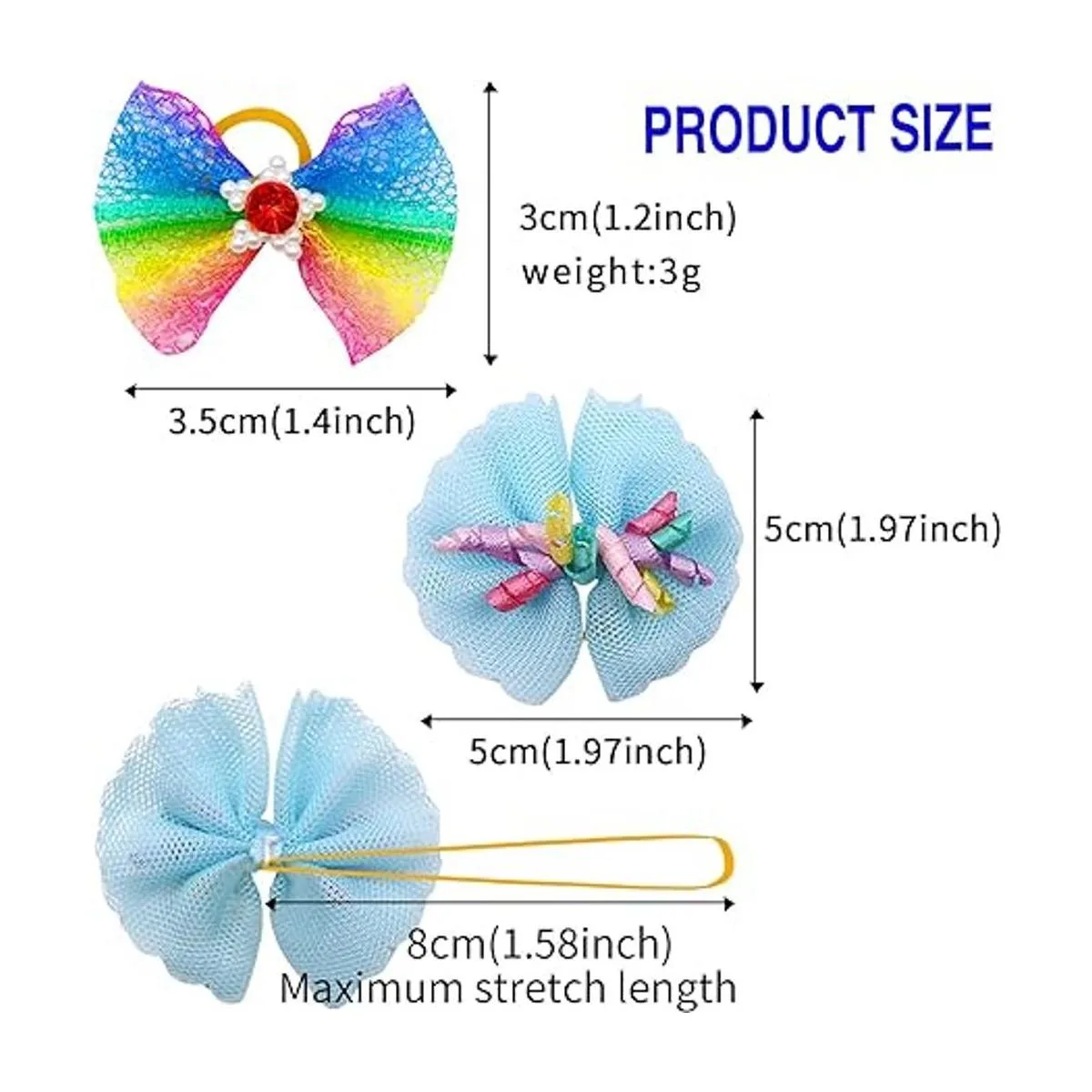 Múltiples materiales: los lazos para el pelo para perros están hechos de encaje de cinta de alta calidad, suave y duradero, lazos para el pelo de perro con bandas de goma, incluso cuando el perro está corriendo o saltando, pueden evitar que el cabello bloquee la visión del perro, las bandas de goma se pueden fijar firmemente, no se caen fácilmente, se pueden estirar cómodamente.