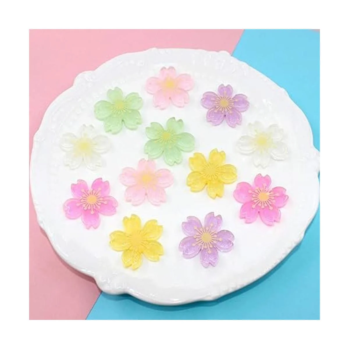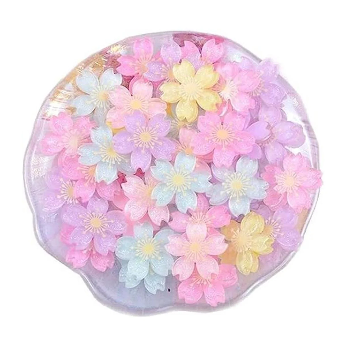 MSCFTFB 50 abalorios de resina de flores Sakura cuentas de plástico con parte trasera plana, cabujones para pendientes, collar, pulsera, fabricación de tarjetas, marco de fotos, accesorios para el cabello, 1inch, Plástico