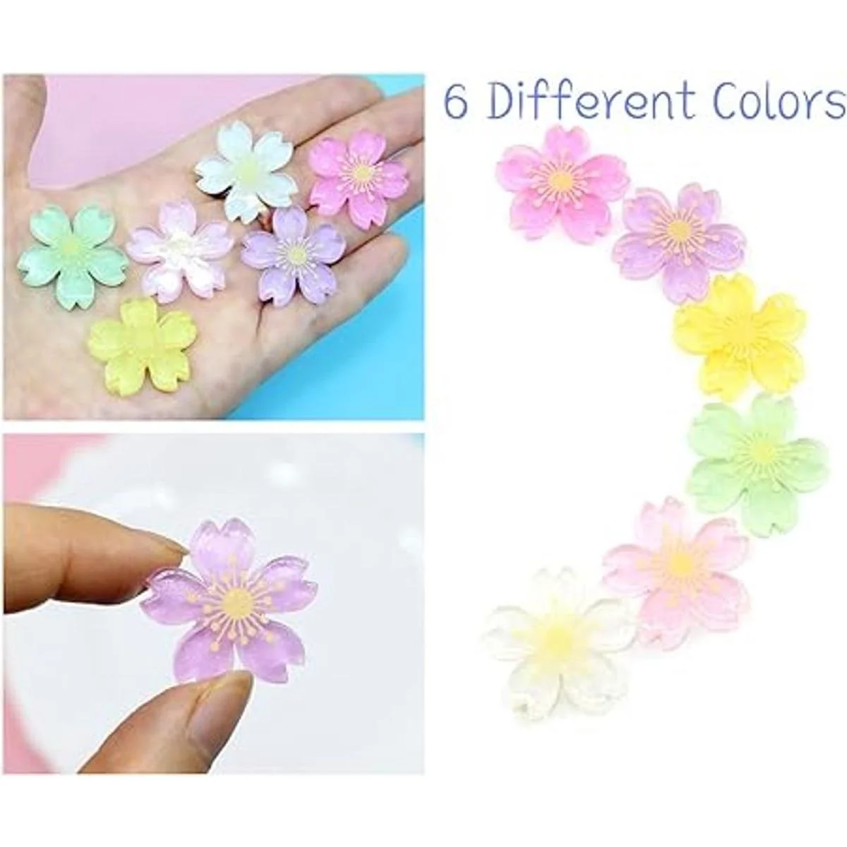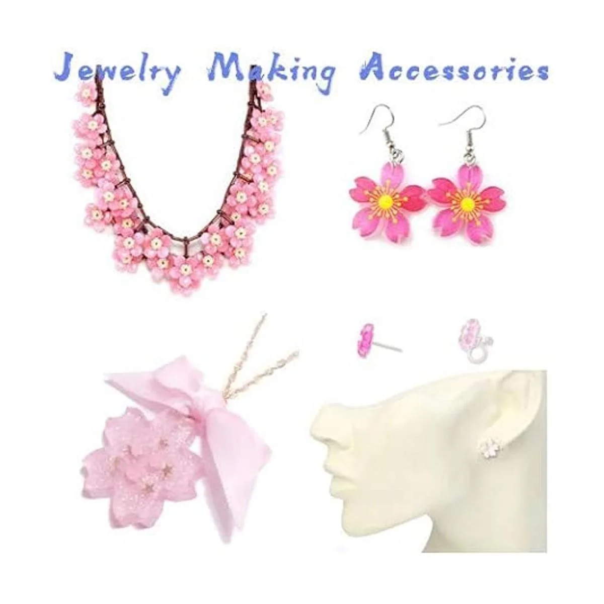 Adornos de plástico en forma de SAKURA: los hermosos dijes de plástico de flores de 5 pétalos puedes utilizar pegamento para aplicar o perforar agujeros para decorar pulseras, collares, gargantillas, pinzas para el cabello, sandalias, corbatas, accesorios para el cabello, sombrero, boina, bufanda, funda de fotos, álbumes de recortes, marcos de fotos, joyería, estuche de lápices, dijes de llavero, dijes de vino, proyectos de limo de primavera, miniaturas de jardín de hadas decoración al aire libre. para manualidades de bricolaje.