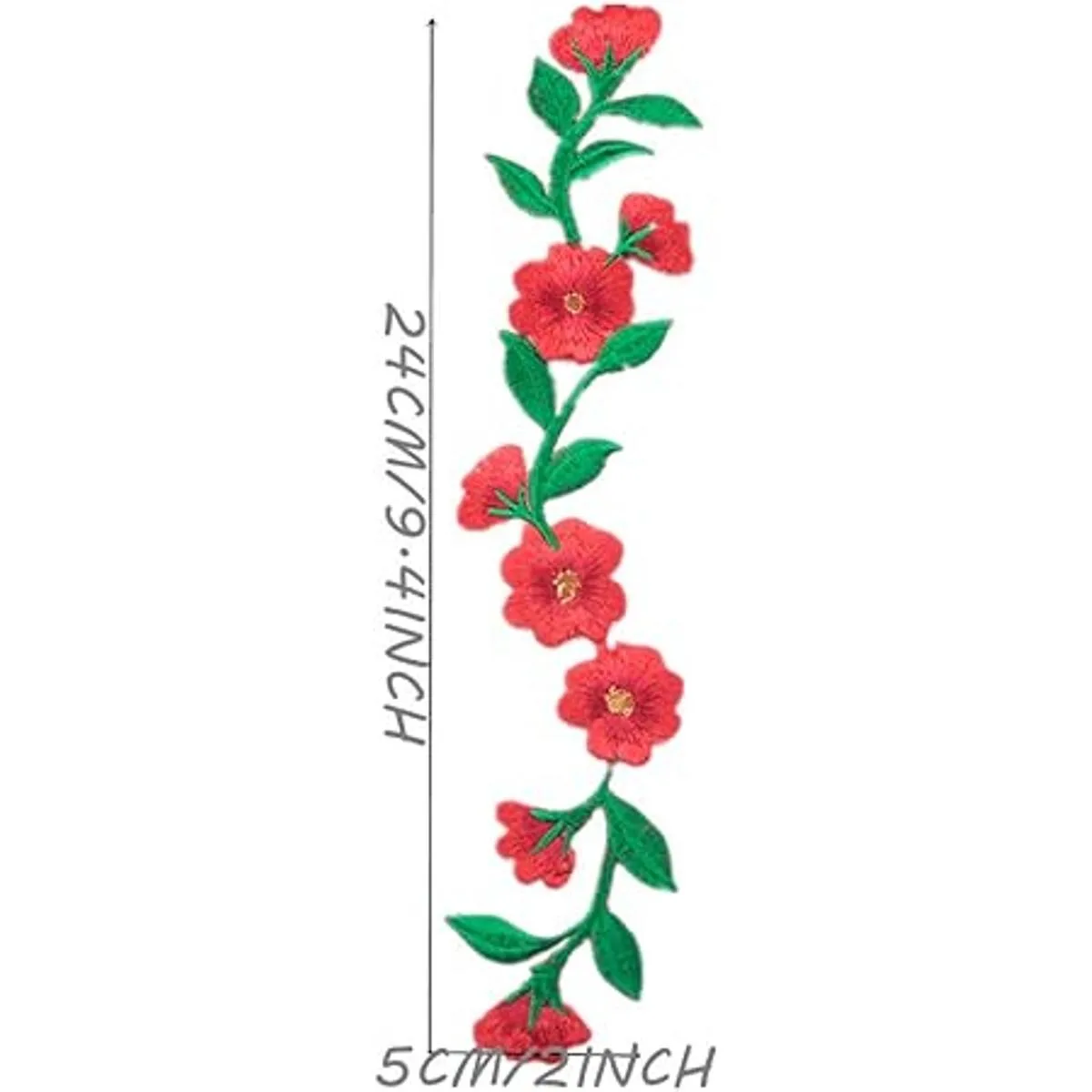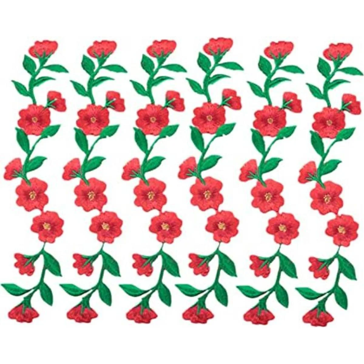 MSCFTFB 6 piezas de 9 12 pulgadas de largo, parches bordados para planchar con flores, parches para recortar ropa, zapatos, jeans, ropa, adornos, rojo