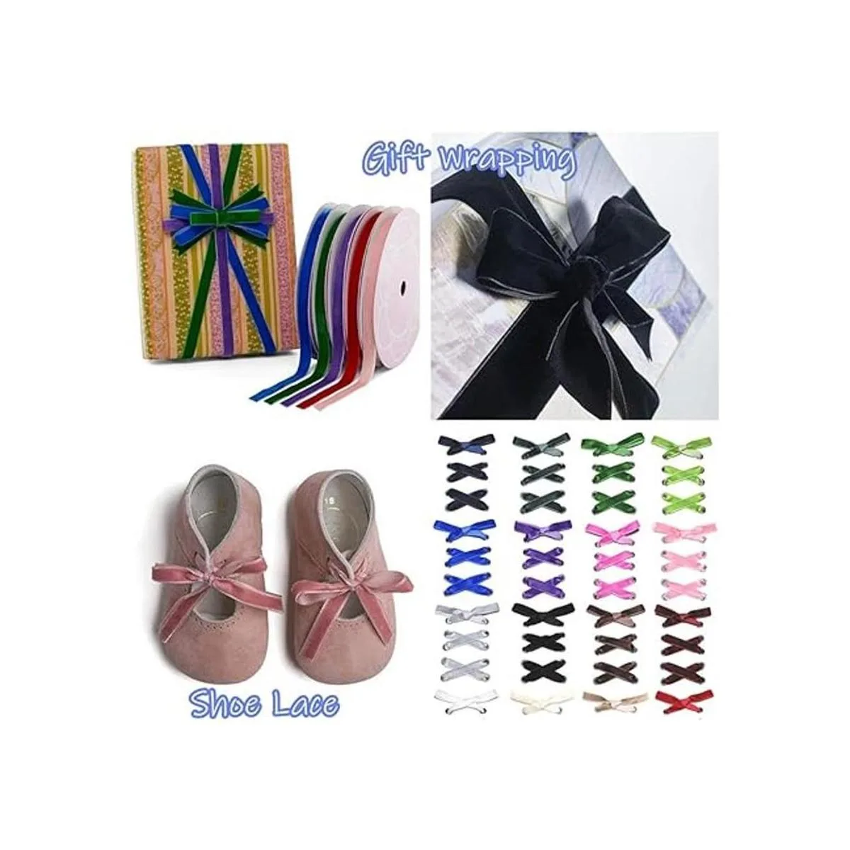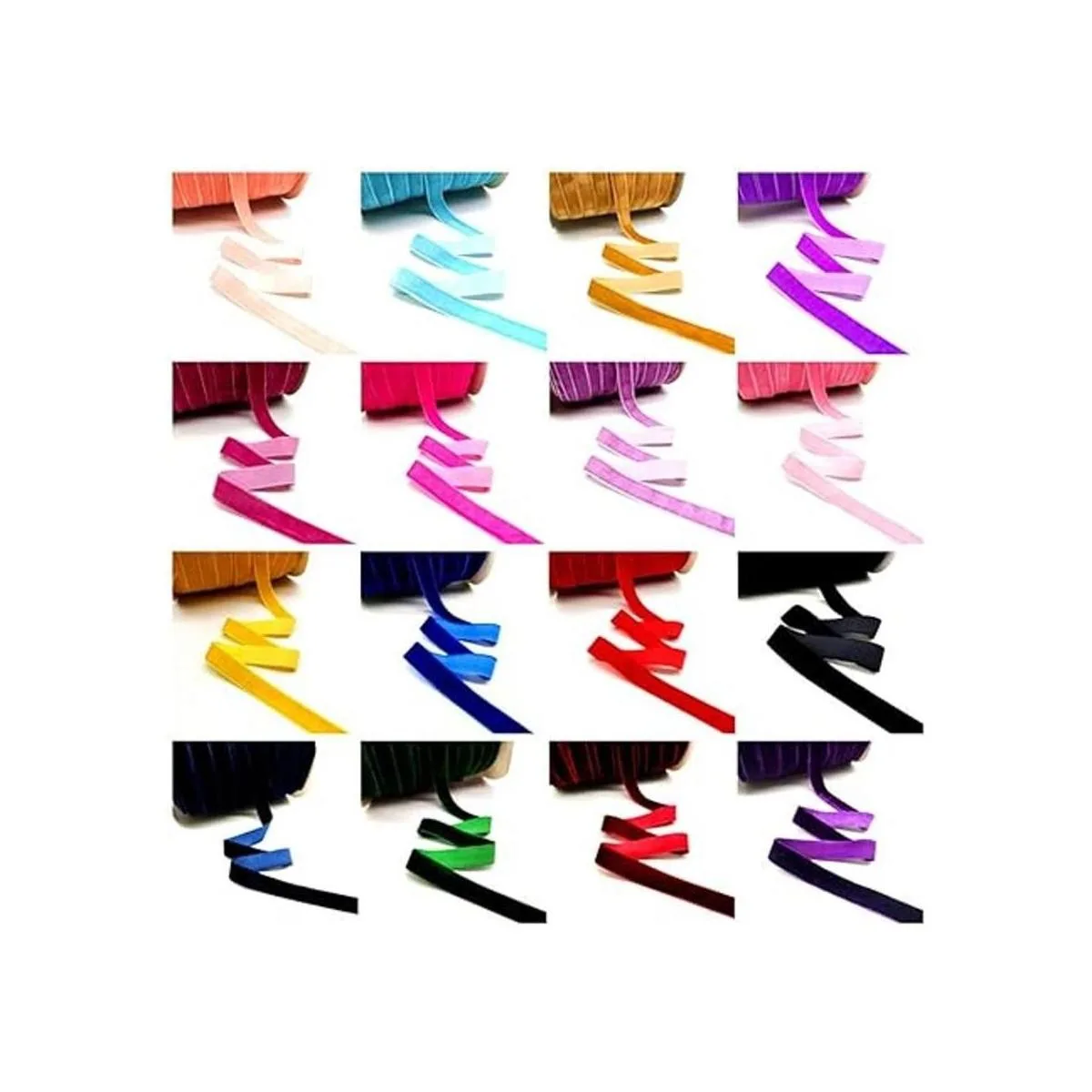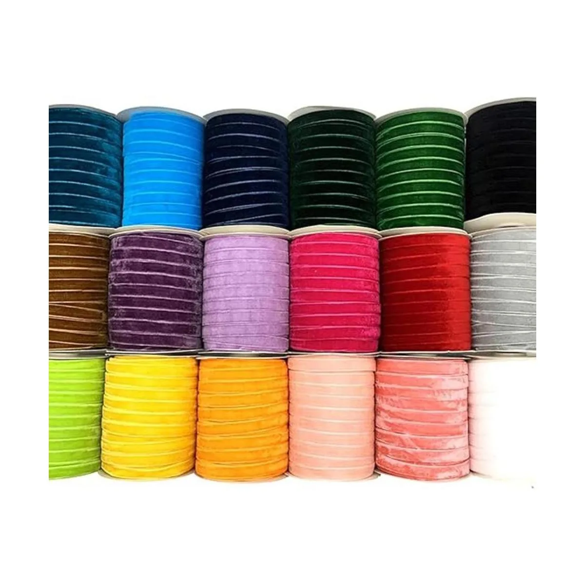 Varias cintas de colores brillantes están disponibles, hay cinta de terciopelo rosa, cinta de terciopelo rosa, cinta de terciopelo azul marino, cinta de terciopelo rojo, cinta de terciopelo negro, cinta de terciopelo blanco, cinta de terciopelo dorado, cinta de terciopelo amarillo y cinta de terciopelo morado, cinta de terciopelo malva, cinta de terciopelo violeta, cinta de terciopelo gris. Todos están en colores elegantes y vintage.