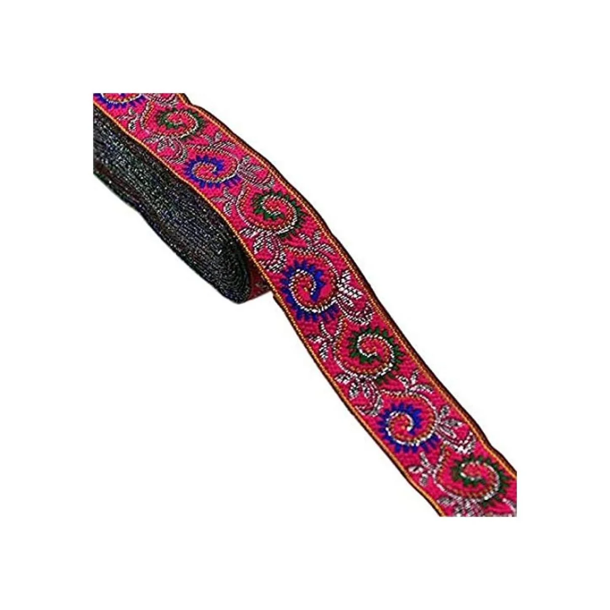 MSCFTFB Pasley Patterns Cinta de tela jacquard tejida, flecos para accesorios de ropa, correas de adorno, cinturones, collares, manualidades, ancho de 1 pulgada por 7.6 yardas rosa