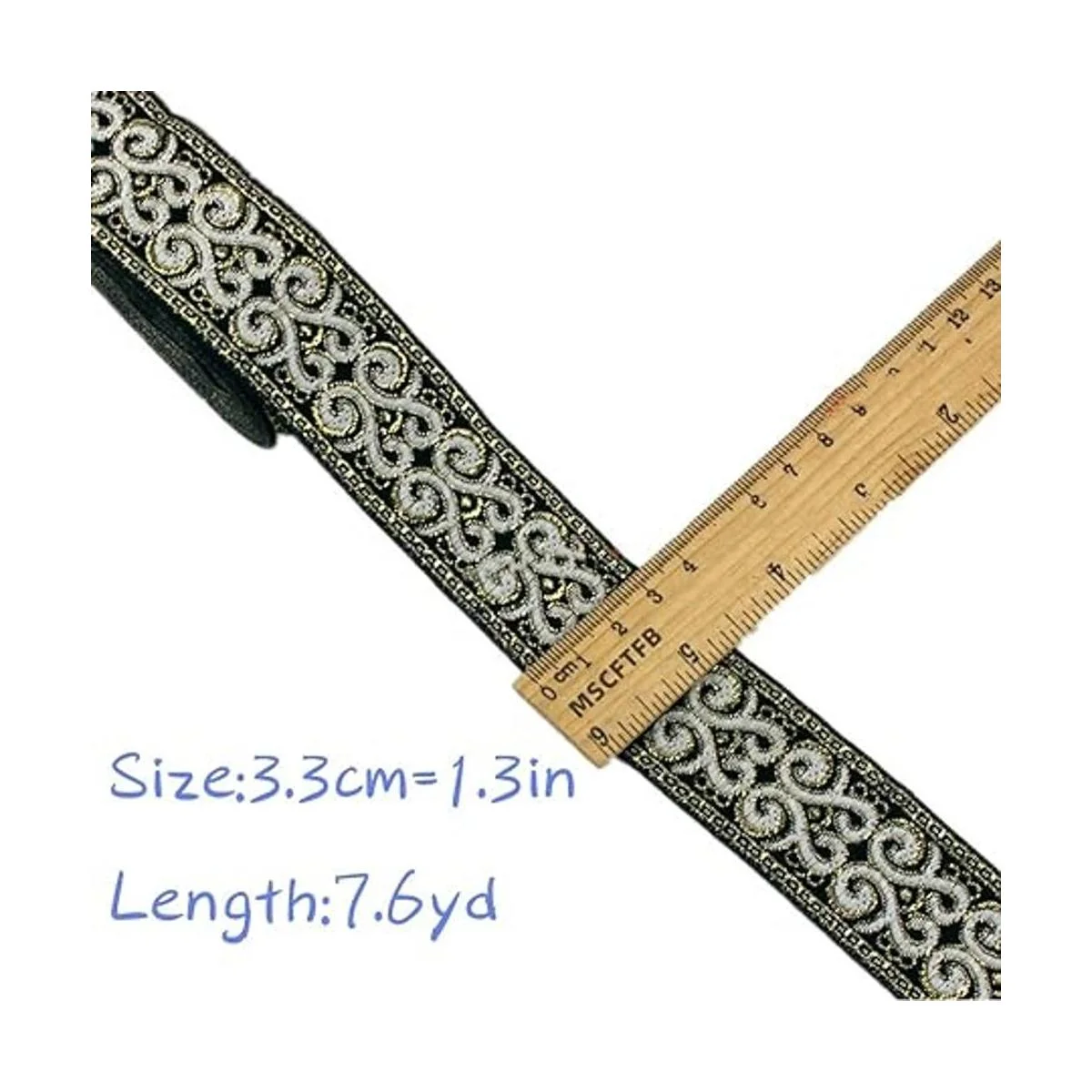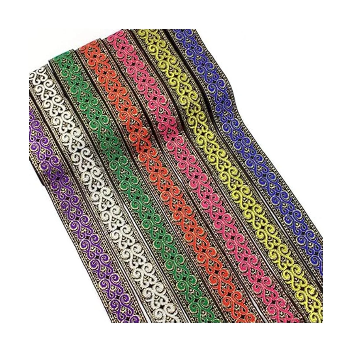 Hilo de algodón bordado de alta calidad e hilo metálico con colores vivos que se tejen y trenzan firmemente, colores rápidos y de alta resistencia. Esta cinta de encaje trenzado es muy pintoresca, detallada y clásica.
