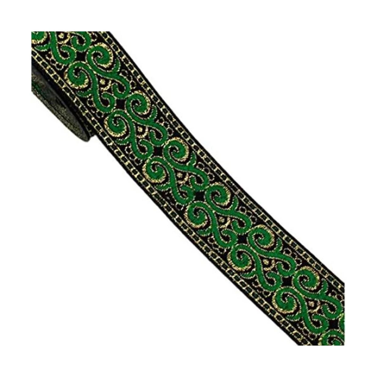 MSCFTFB Patrones de palmette, cinta de tela tejida, franja de tela para accesorios de ropa, correas de adorno, cinturones, collares de tela, manualidades, ancho 1.3 pulgadas por 7.6 yardas verde