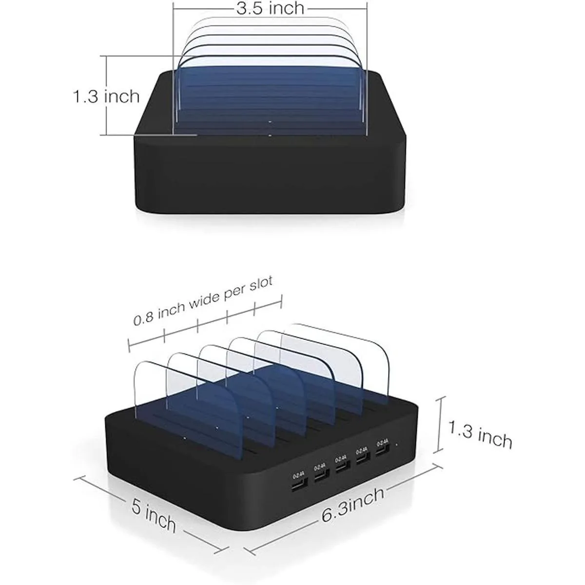 Limpio y organizado: la estación de carga USB de 5 puertos puede cargar hasta 5 dispositivos en un solo lugar simultáneamente. La estación de carga del teléfono mantiene tu escritorio organizado y limpio, sin cables desordenados, sin usar todas tus tomas de cargador de pared USB.