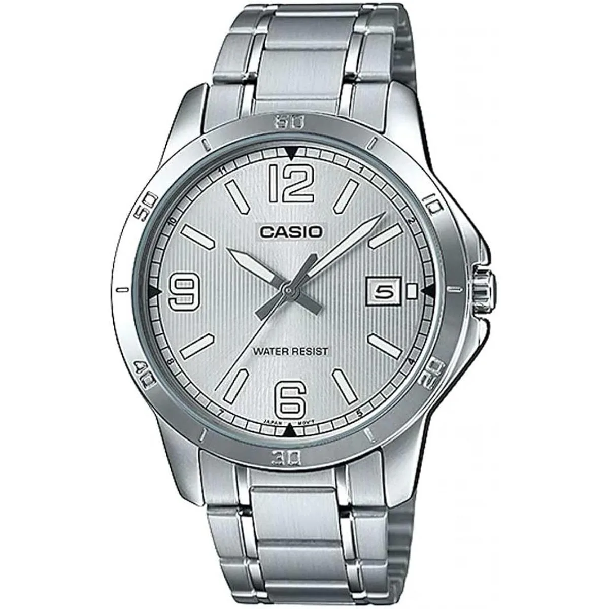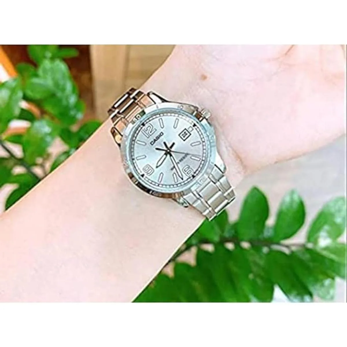 Casio MTPV004D7B2 Reloj analógico de acero inoxidable con esfera plateada para hombre
