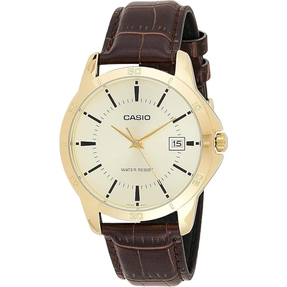 Casio MTPV004GL9A Reloj de cuarzo con fecha para hombre con piel auténtica