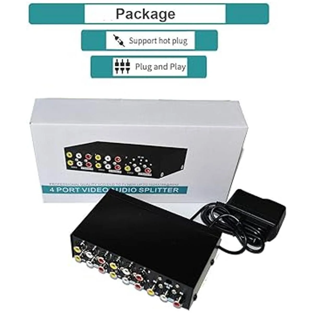 MTVIKI 104AV, divisor de audio RCA de 4 vías, 1 juego de entrada de audio y vídeo se puede duplicar/duplicar 4 juegos de salida de audio y vídeo.