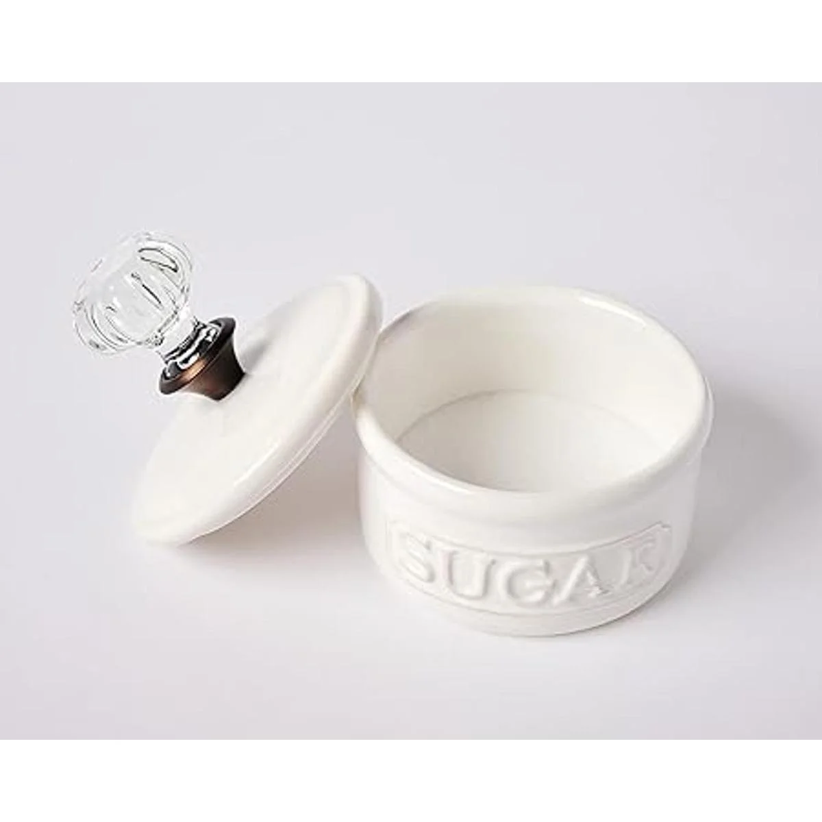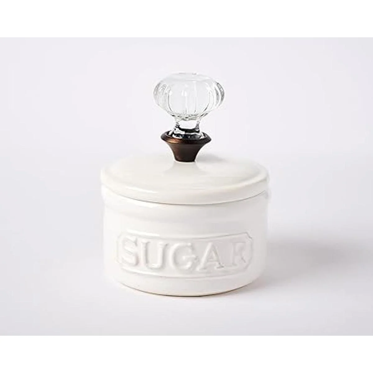 Azucarero de cerámica con tapa extraíble con mango de puerta de vidrio de inspiración vintage.
