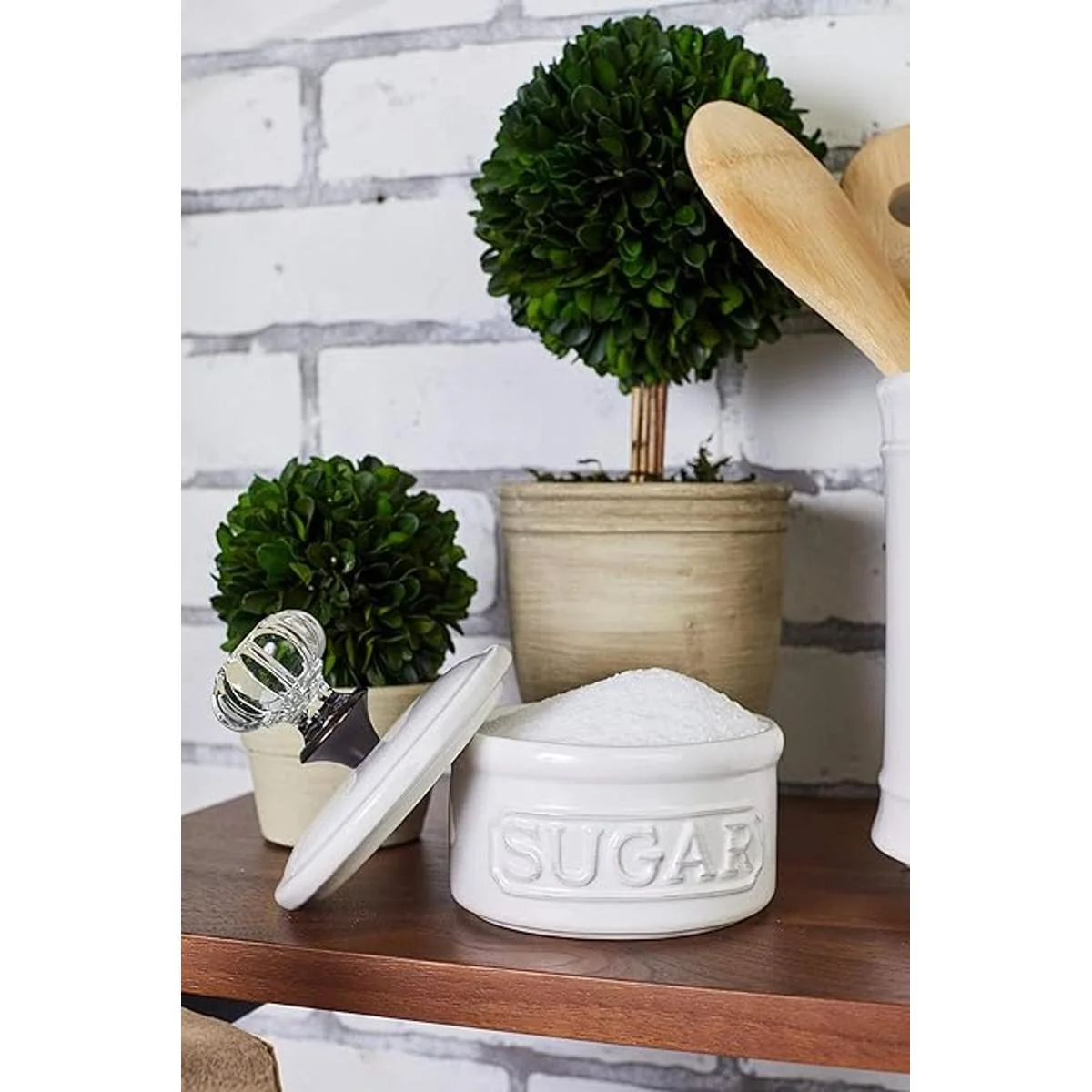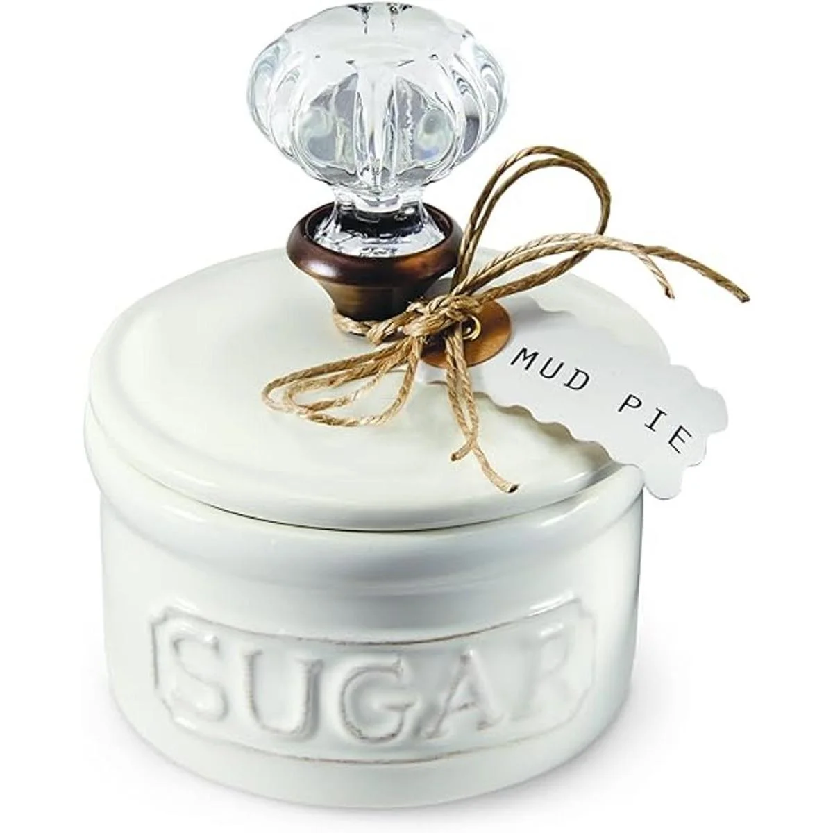 Mud Pie Pomo de la puerta, cuenco de azúcar, color blanco, 5.85 pulgadas de alto x 6.7 pulgadas de largo x 6.35 pulgadas de ancho