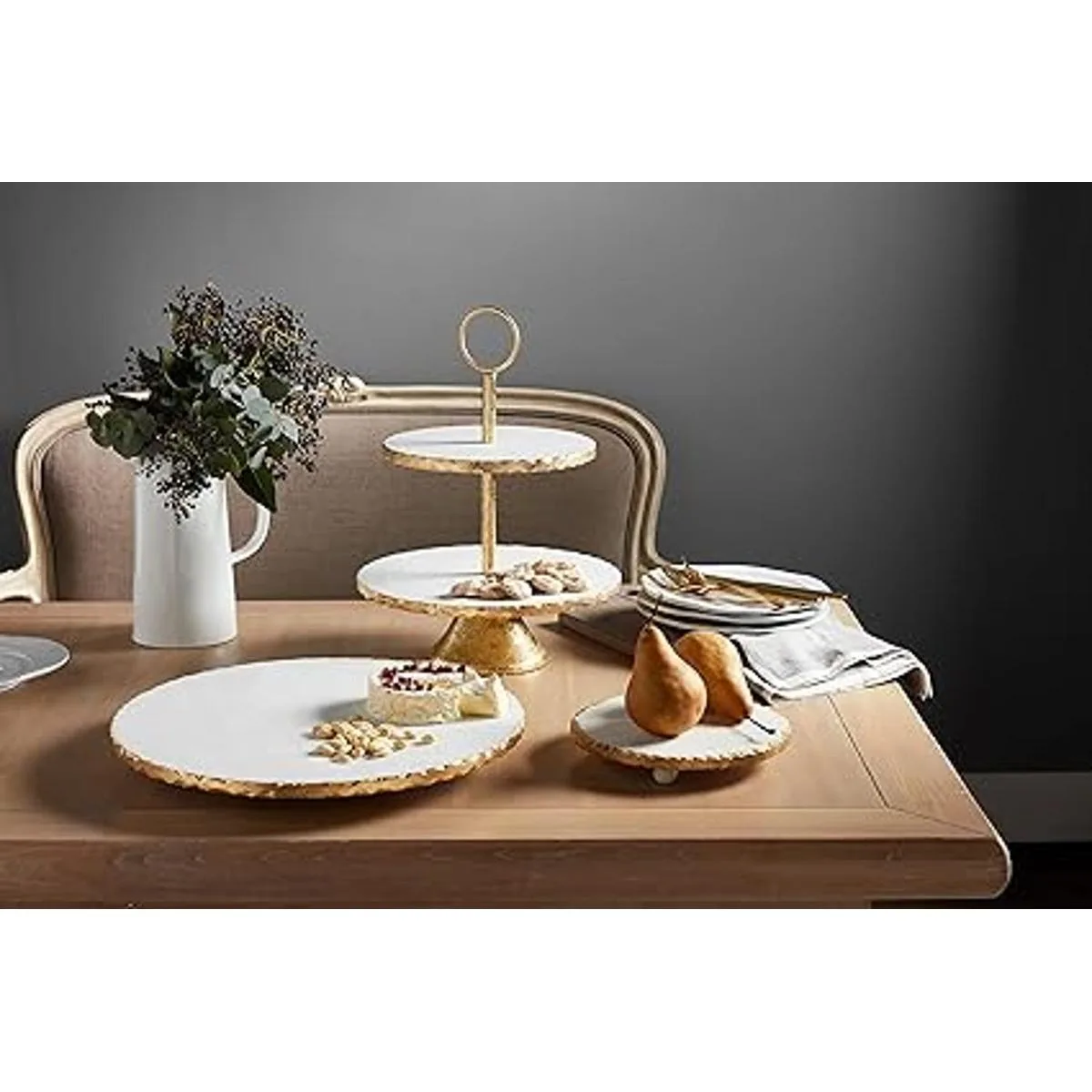 El salvamanteles de mármol con pies cuenta con borde crudo de lámina dorada.