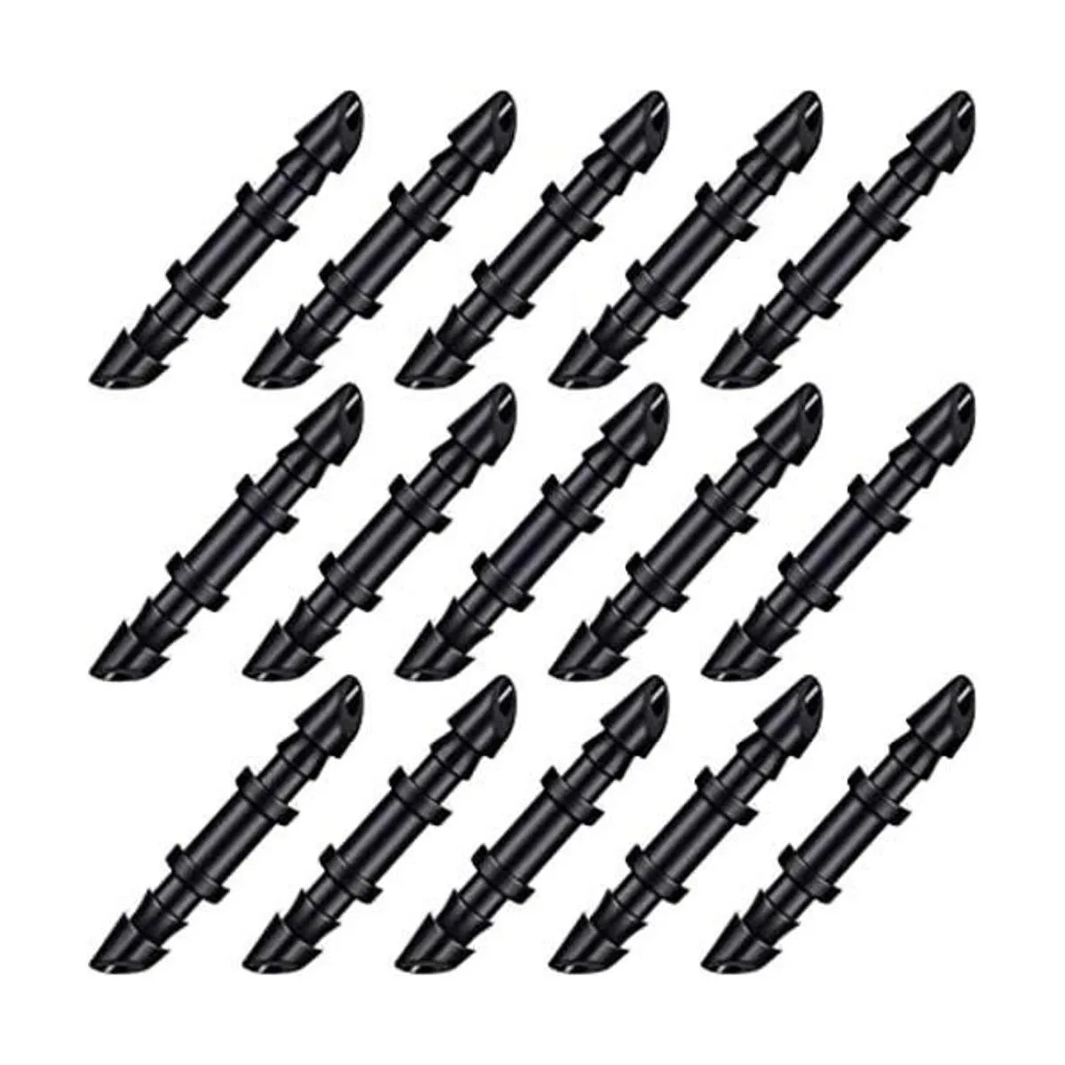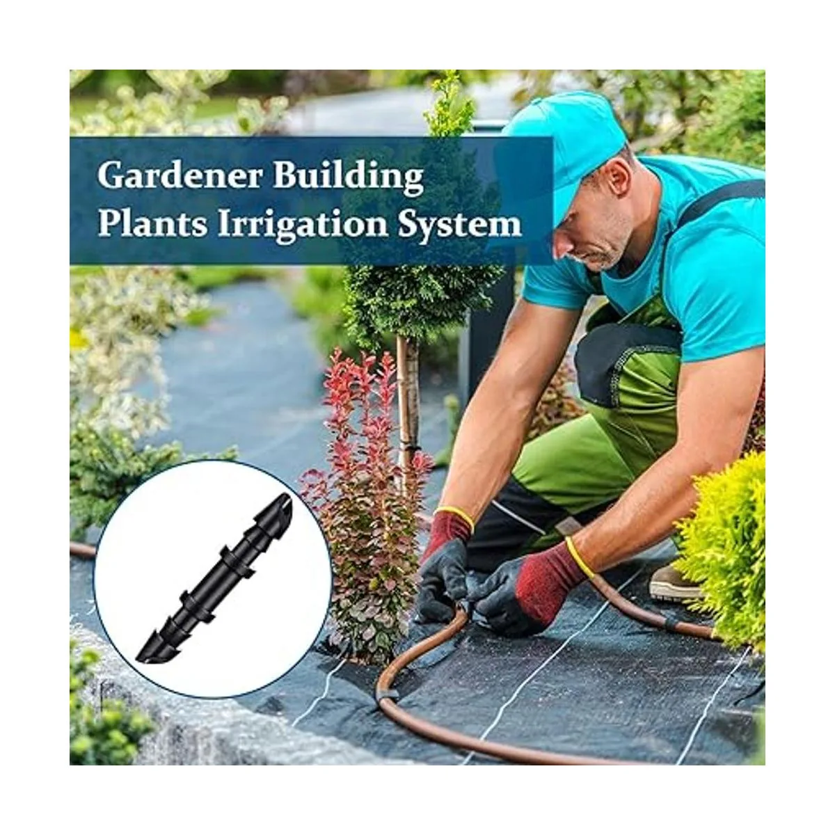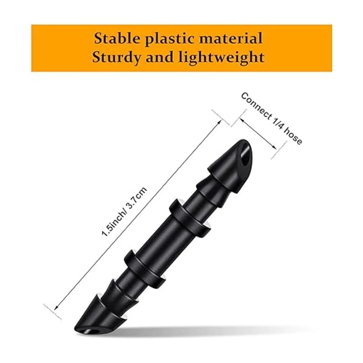 Mudder 150 conectores de púas de riego por goteo de 14 pulgadas, conectores de púas para tubos de riego de 14 pulgadas, acoplador de línea de goteo para sistemas de rociadores por goteo, color negro