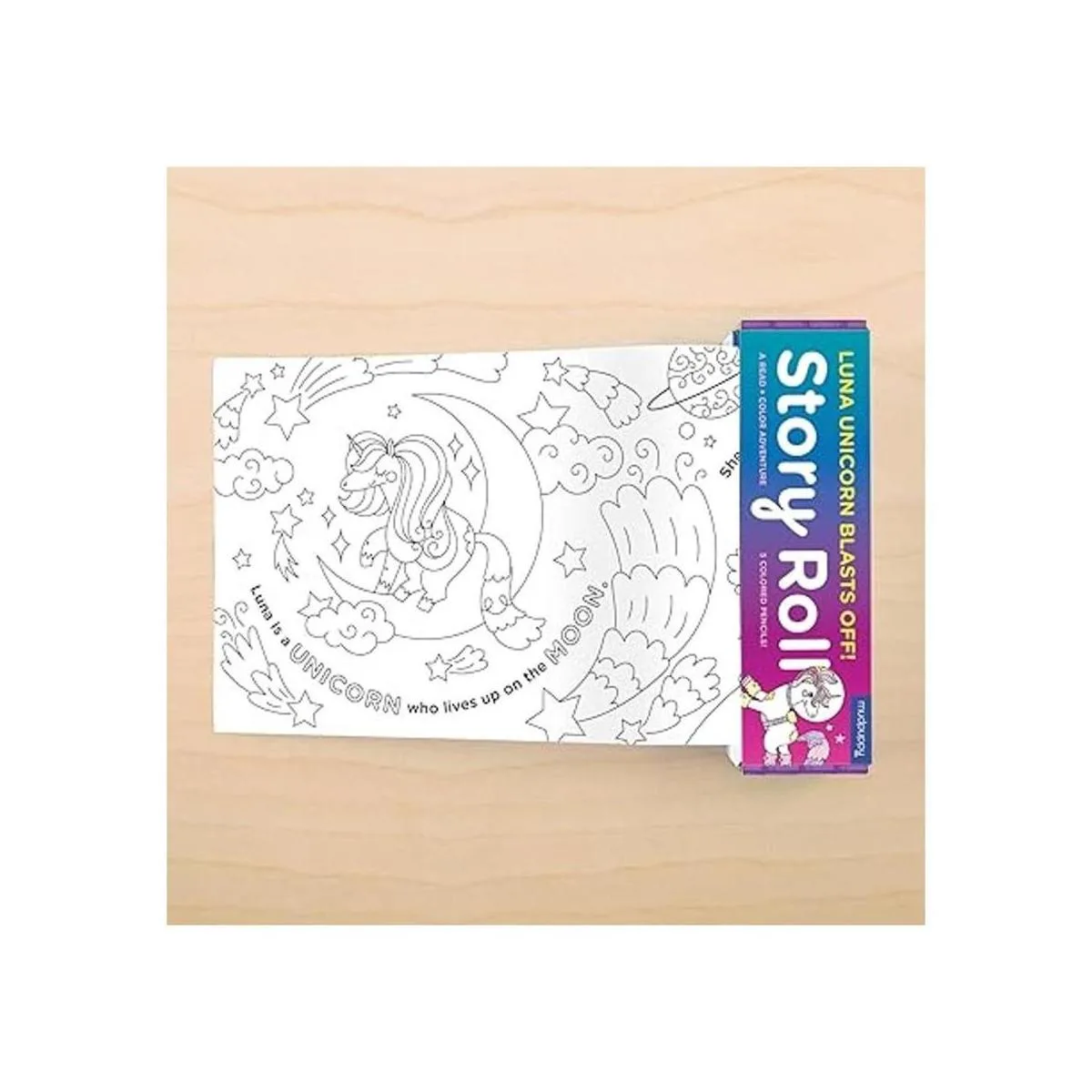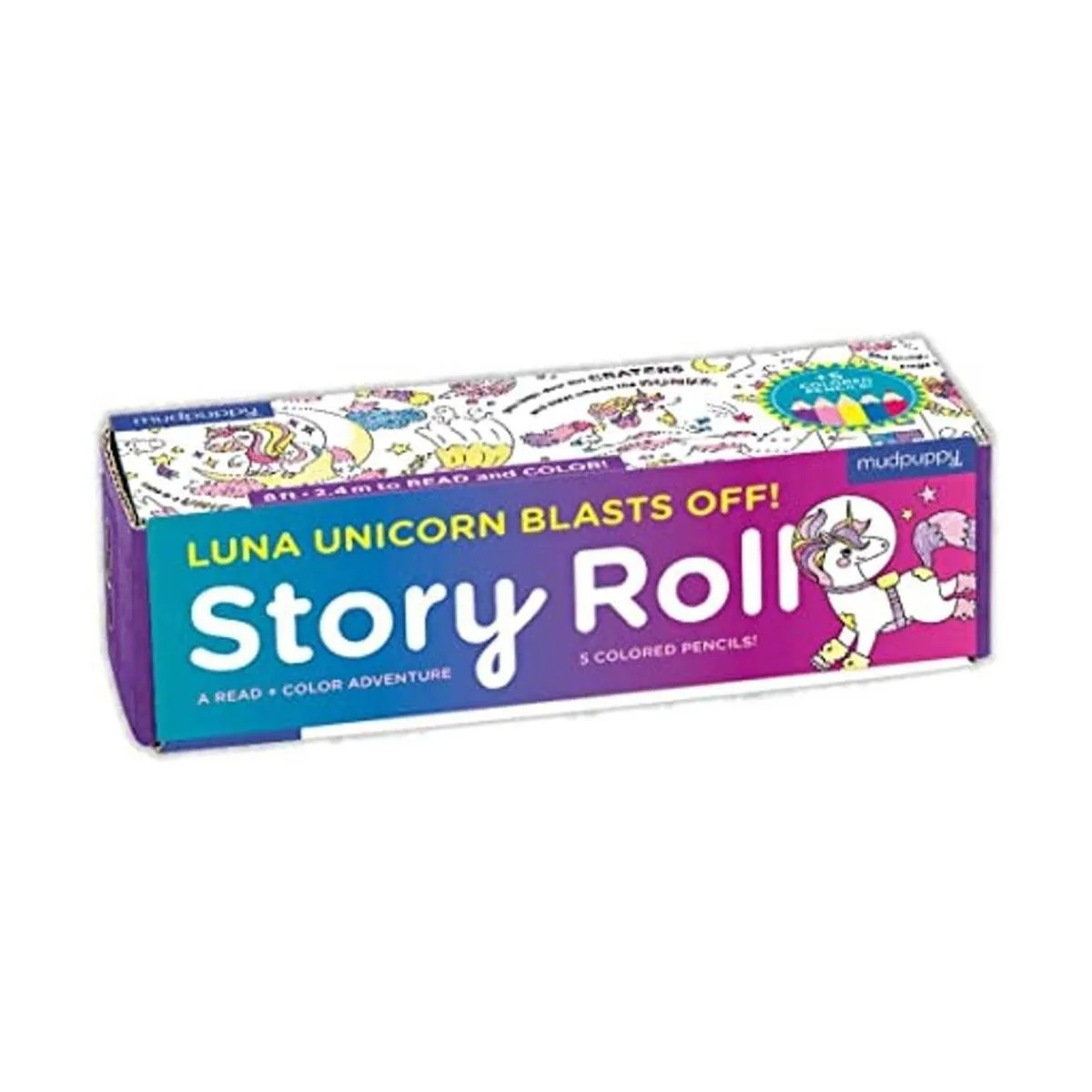 Mudpuppy Luna Unicorn Blast Off Rollo de papel para colorear con historia continua y unicornio que mide 8 pies 5 lápices de colores incluidos, una aventura de lectura y color para niños de 4 , multicolor