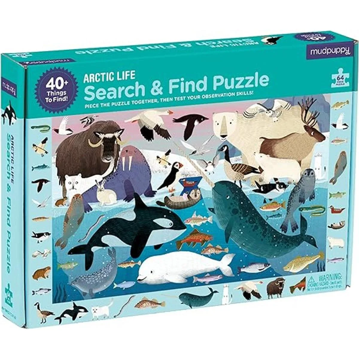Busca y encontra: poner el rompecabezas de búsqueda y búsqueda de la vida ártica es solo la mitad de la diversión Cuando se completa, los niños pueden probar sus habilidades de observación para encontrar los más de 40 animales, peces y pájaros que se muestran en el borde alrededor de la imagen del rompecabezas en el arte del rompecabezas.