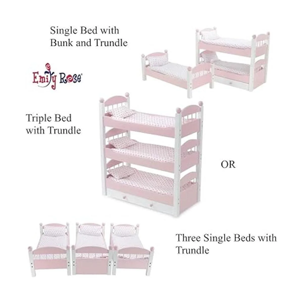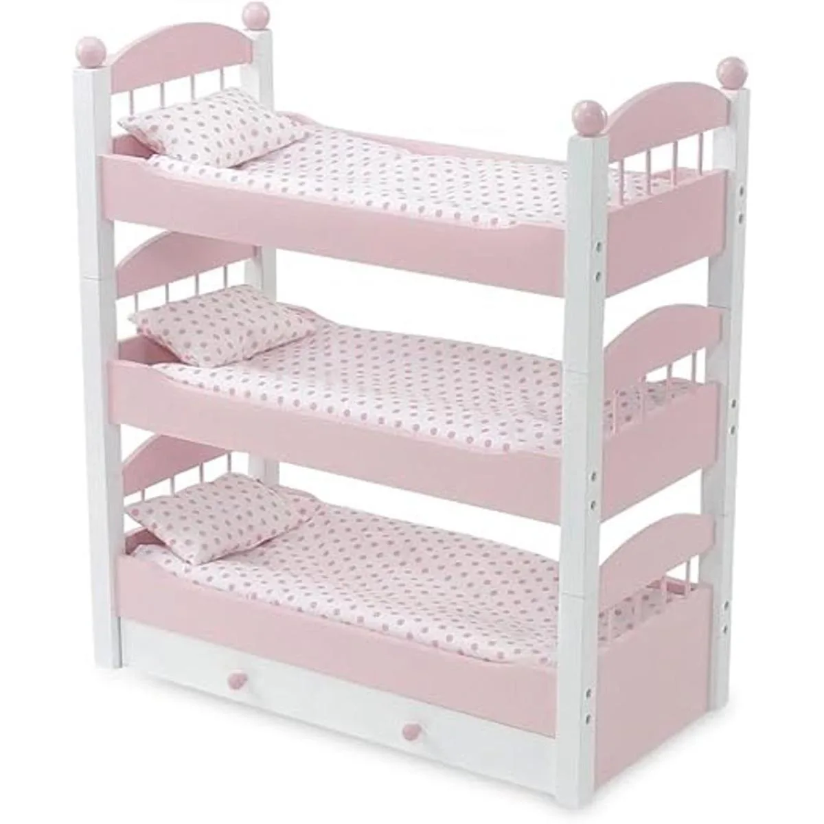 Mueble de muñeca de 18 pulgadas para muñecas | Muñeca 18 literas triples, incluye 3 camas apilables individuales de 18 muñecas y cajón de almacenamiento de ropa de muñeca de 18 pulgadas, se adapta a muñecas American Girl y My Life de 18 pulgadas