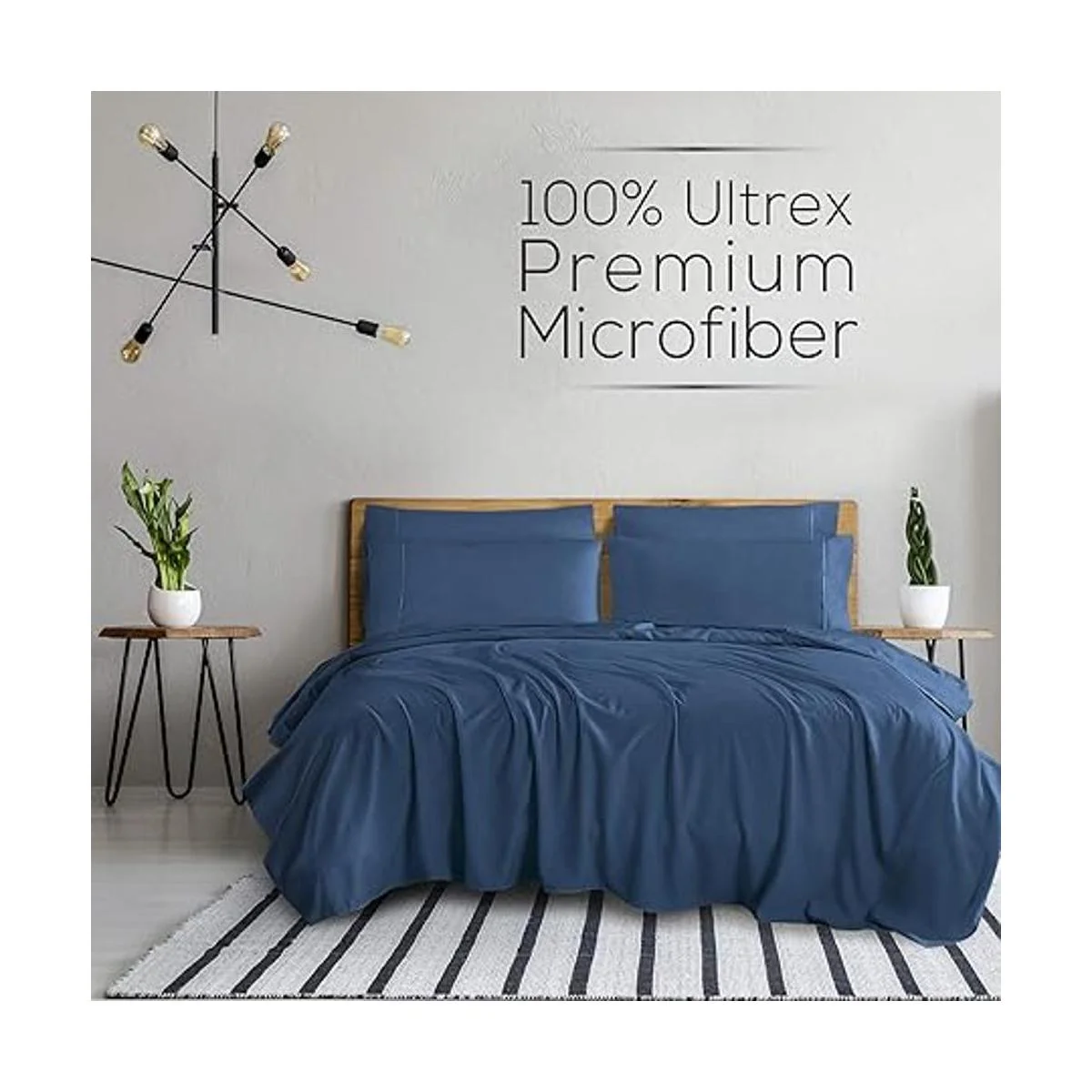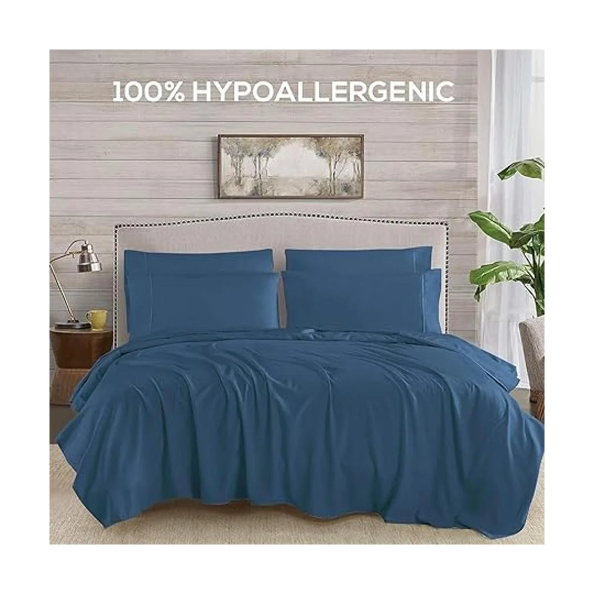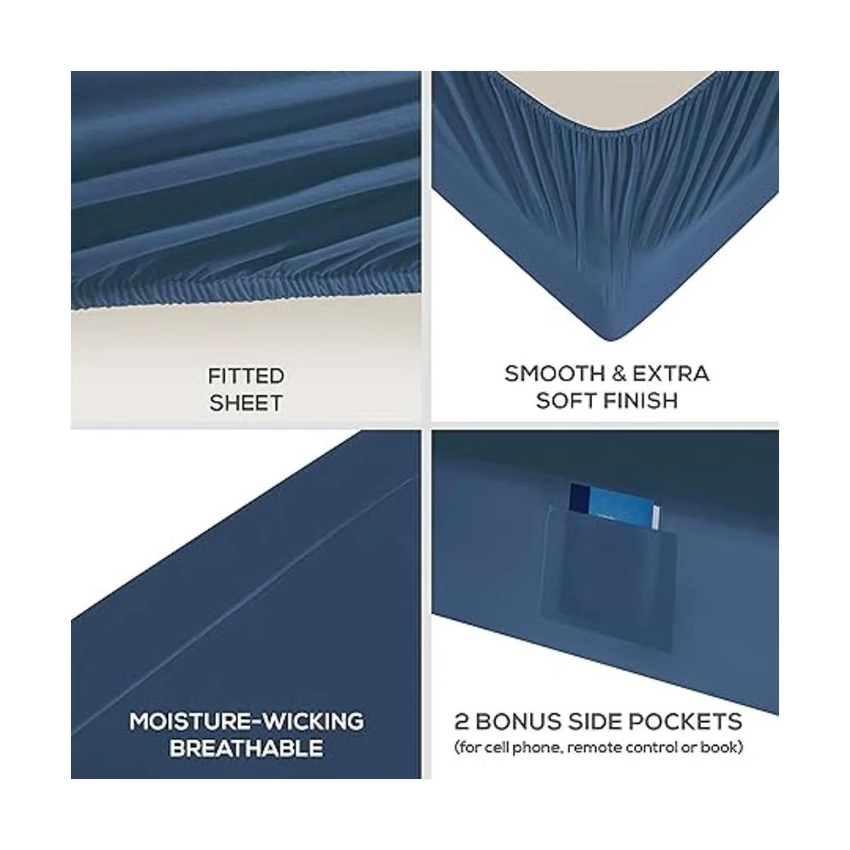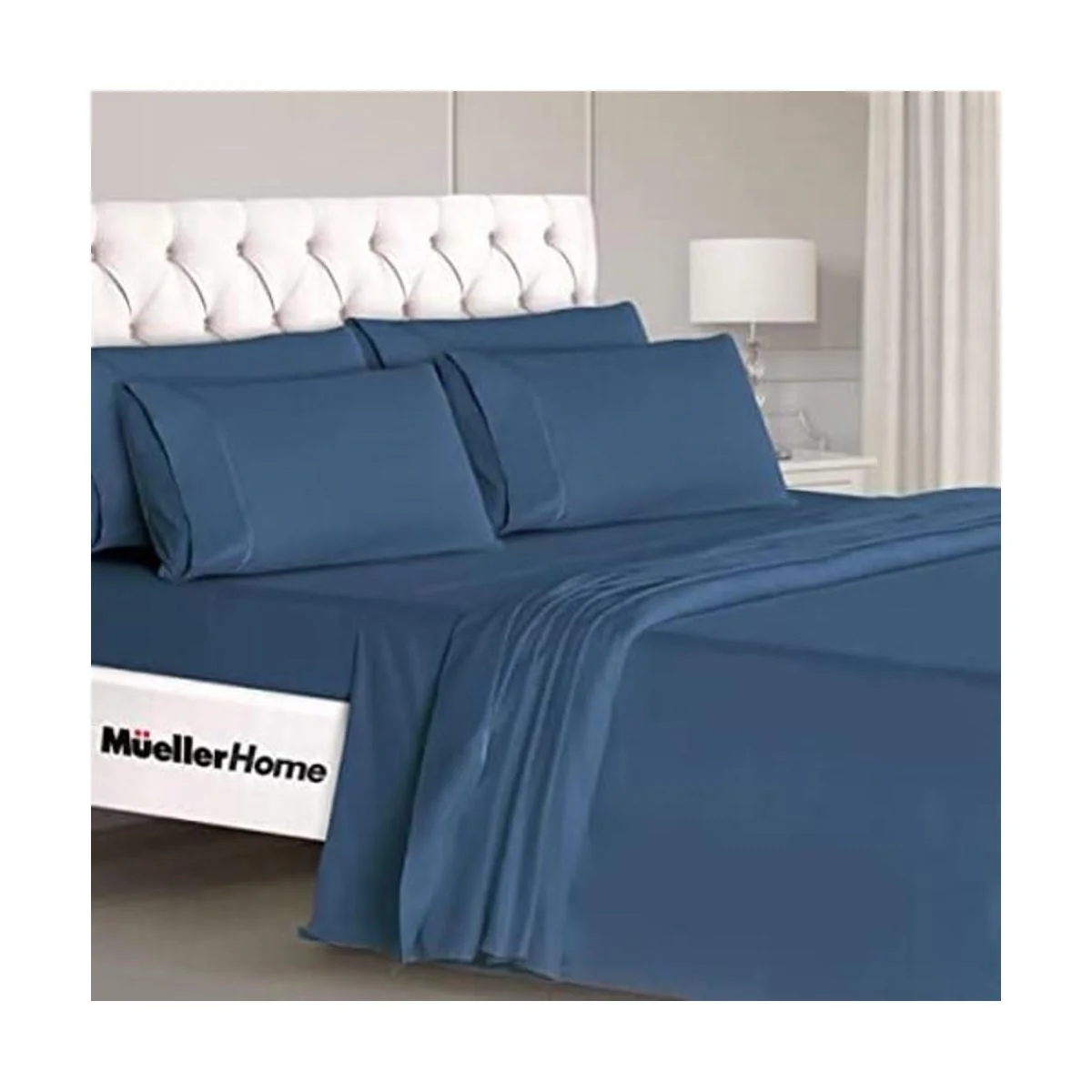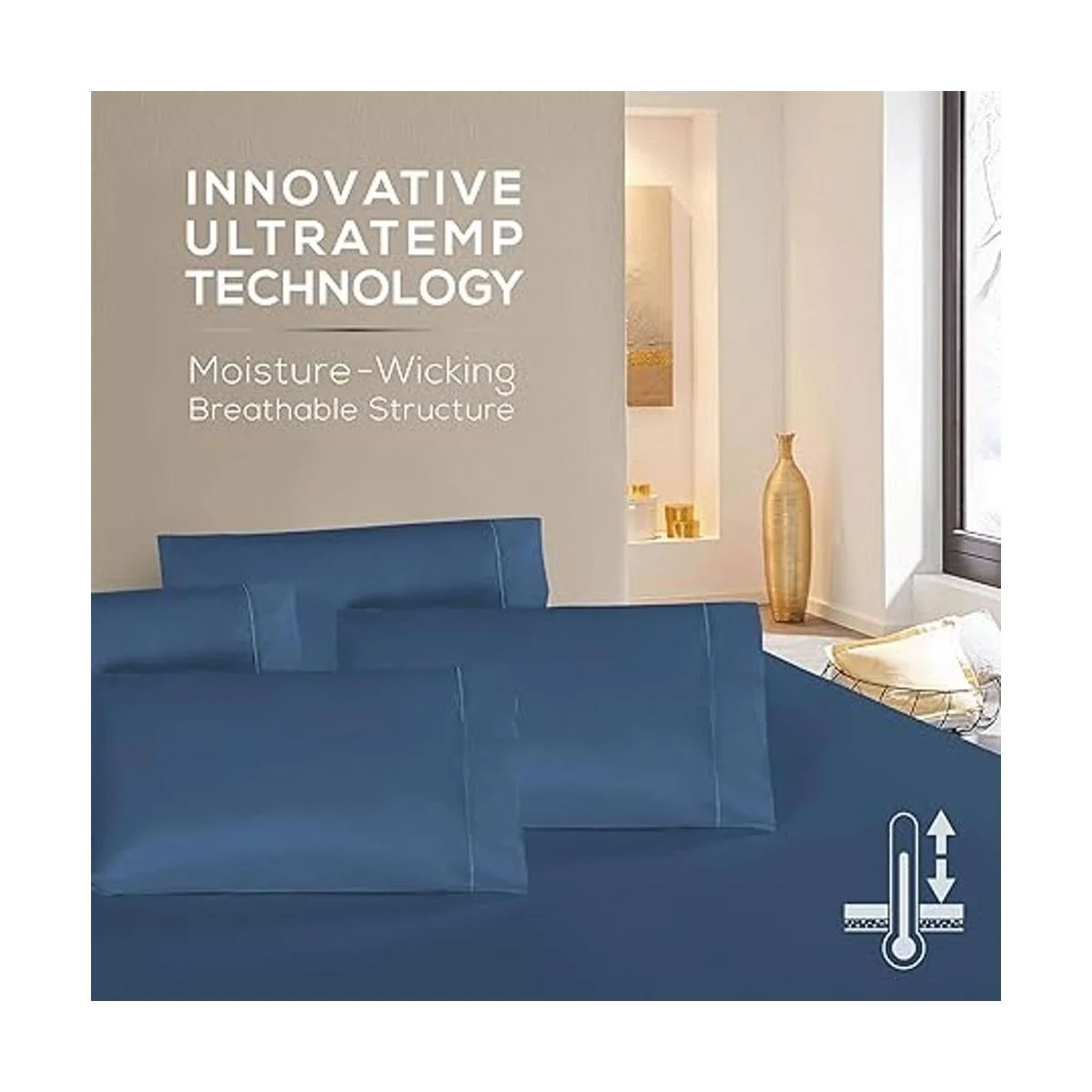 Mueller Ultratemp Juego de sábanas súper suaves de 1800 hilos egipcios, con bolsillo de 1824 pulgadas de profundidad, control de temperatura, más respirables, hipoalergénicas, no se arrugan, 6 unidades, azul marino, tamaño Queen