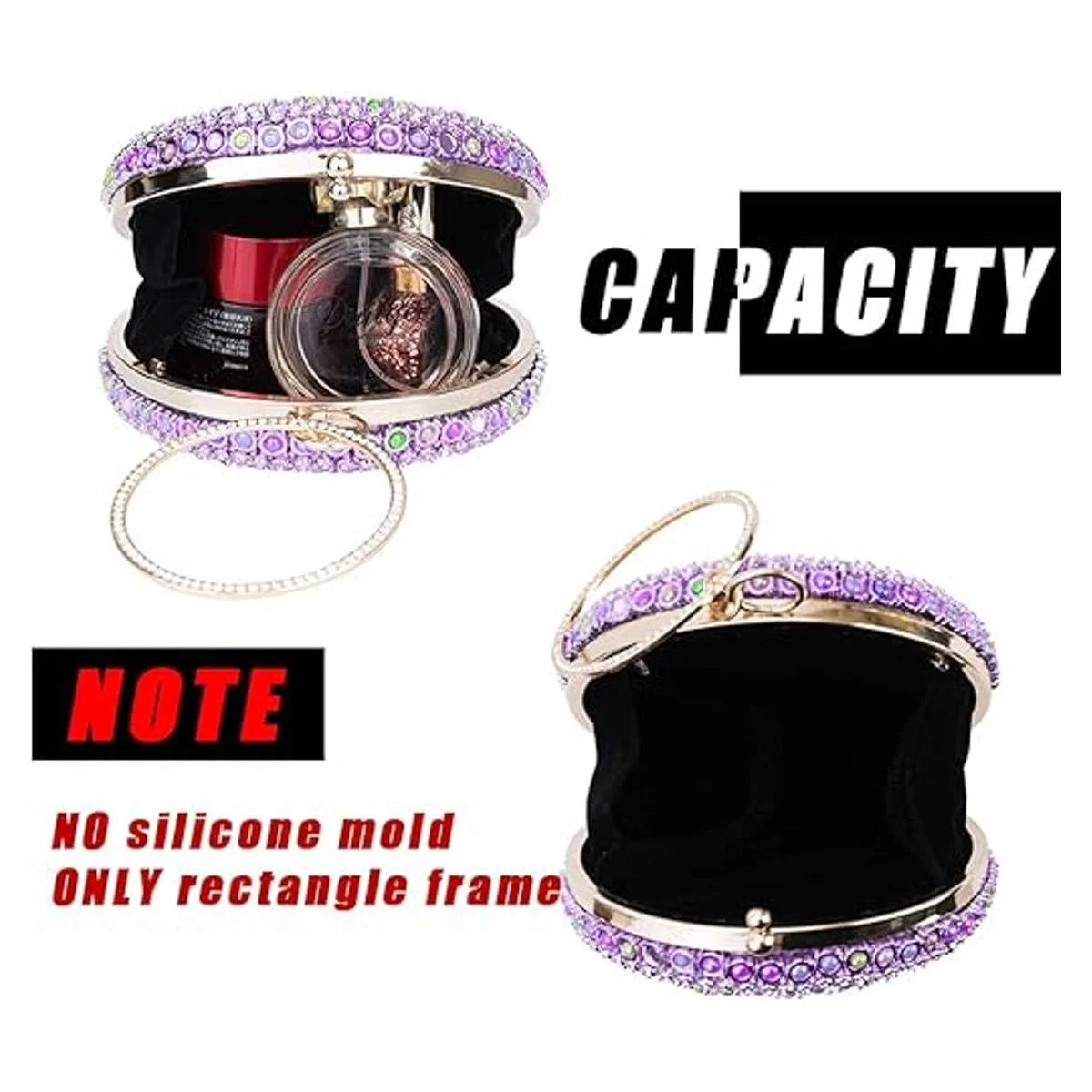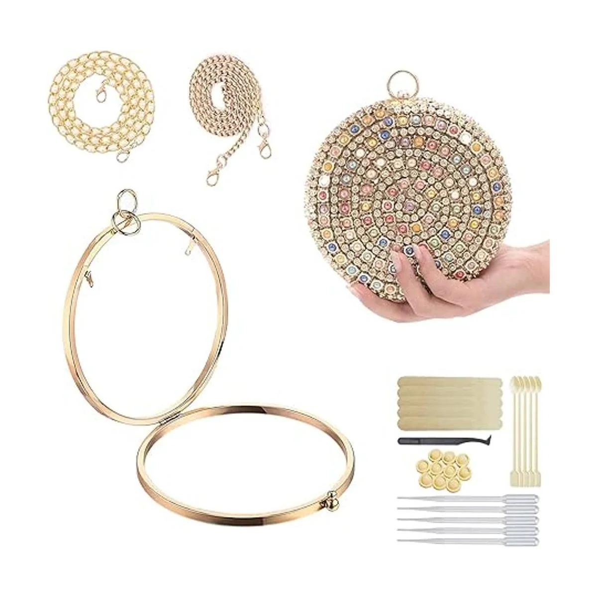 MUFUN Bolsa de resina con marco de embrague, accesorios de moldes, marco de aleación de metal para bolso de bricolaje, embrague de resina, antioxidante y antidecoloración, con 26 herramientas sin molde de silicona