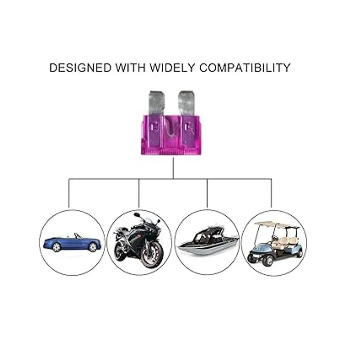 Amplio uso: fusibles surtidos MuHize 2A/3A/5A/7.5A/10A/15A/20A/25A/30A/35A 10 piezas de cada uno, están diseñados específicamente para coches, camiones, SUV, vehículos, ATV, UTV, caravanas, motocicletas, flotas, coches de golf, barcos, motos de nieve y la mayoría de aplicaciones generales de CC, etc., cubriendo componentes como radio, luz, señal de giro. Als, etc.