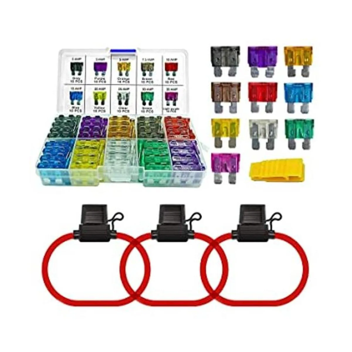 El paquete incluye: la caja surtida de fusibles MuHize contiene: 100 fusibles de hoja estándar comúnmente utilizados APR, ATC, ATO, ATS y 1 abrazadera de fusible. ; 3 portafusibles estándar grandes de calibre 12 200 más gruesos.