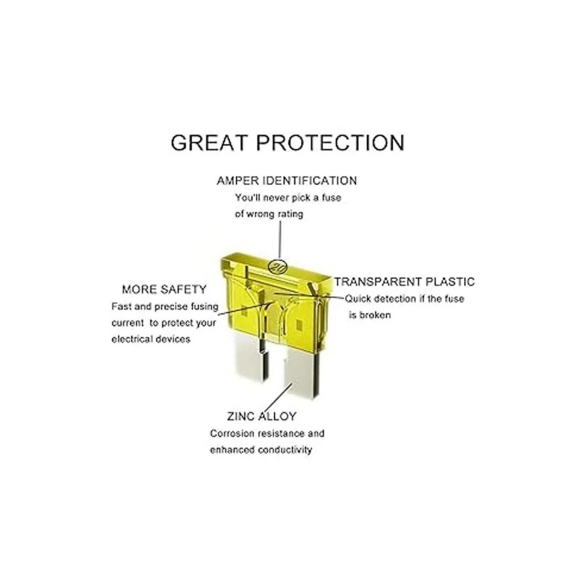Gran protección: los terminales están fabricados con zinc chapado en estaño para resistencia a la corrosión y conductividad mejorada. Fusibles MuHize hechos de materiales de primera calidad, corriente de fusión rápida y precisa para proteger tus vehículos y dispositivos eléctricos de un cortocircuito y sobrecarga.