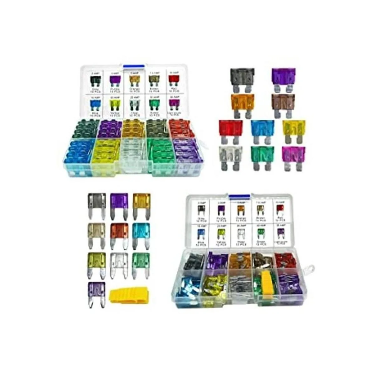 MuHize Juego de 220 fusibles de coche estándar y mini 2A 3A 5A 7.5A 10A 15A 20A 25A 30A 35A surtido de fusibles con extractor, fusibles de repuesto para coche, RV, SUV, camión, caravana