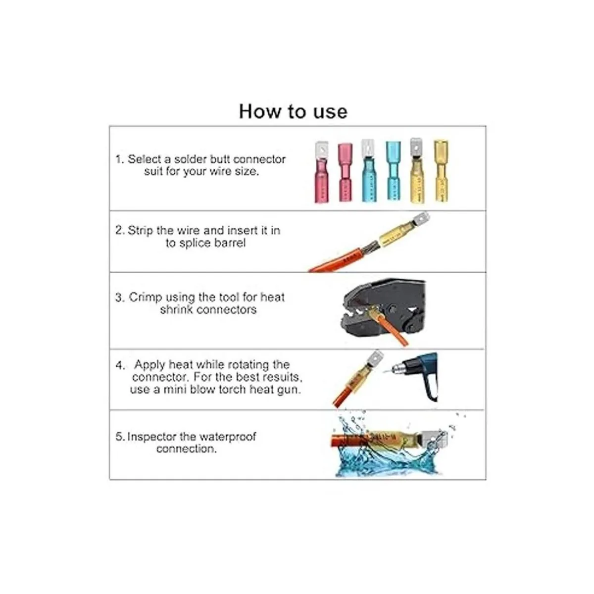 Durabilidad: los conectores termorretráctiles están hechos de materiales de barril de cobre 200 más gruesos. Proporciona una mayor resistencia a la tracción, así como una mejor resistencia al estiramiento y daños mecánicos.