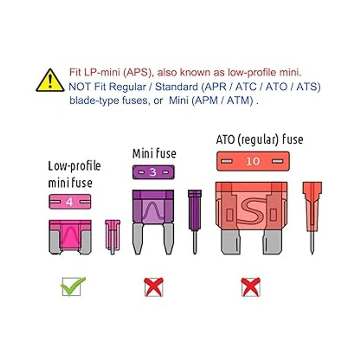 el tipo de fusibles perfil bajo micro/pequeño/menor es no regular/estándar, no máximo, no mini. Comprueba el manual del propietario para confirmar el tipo de fusible antes de comprar.