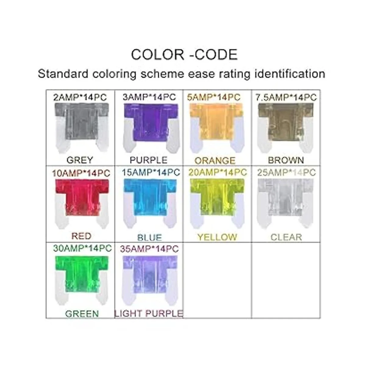El paquete incluye: la caja surtida de fusibles MuHize Low Profile contiene 140 fusibles de hoja comúnmente utilizados y una abrazadera de fusible. 14 piezas de cada uno.