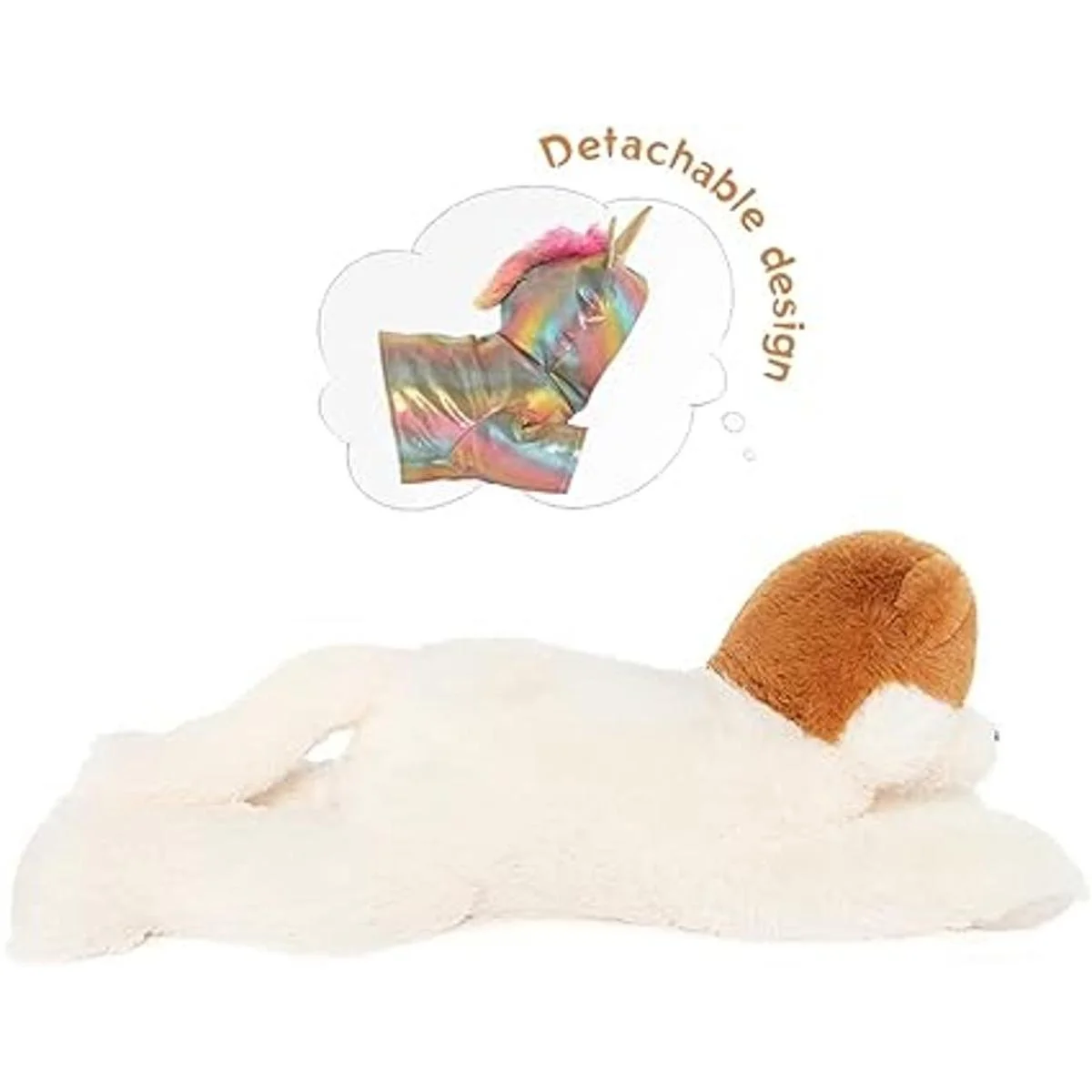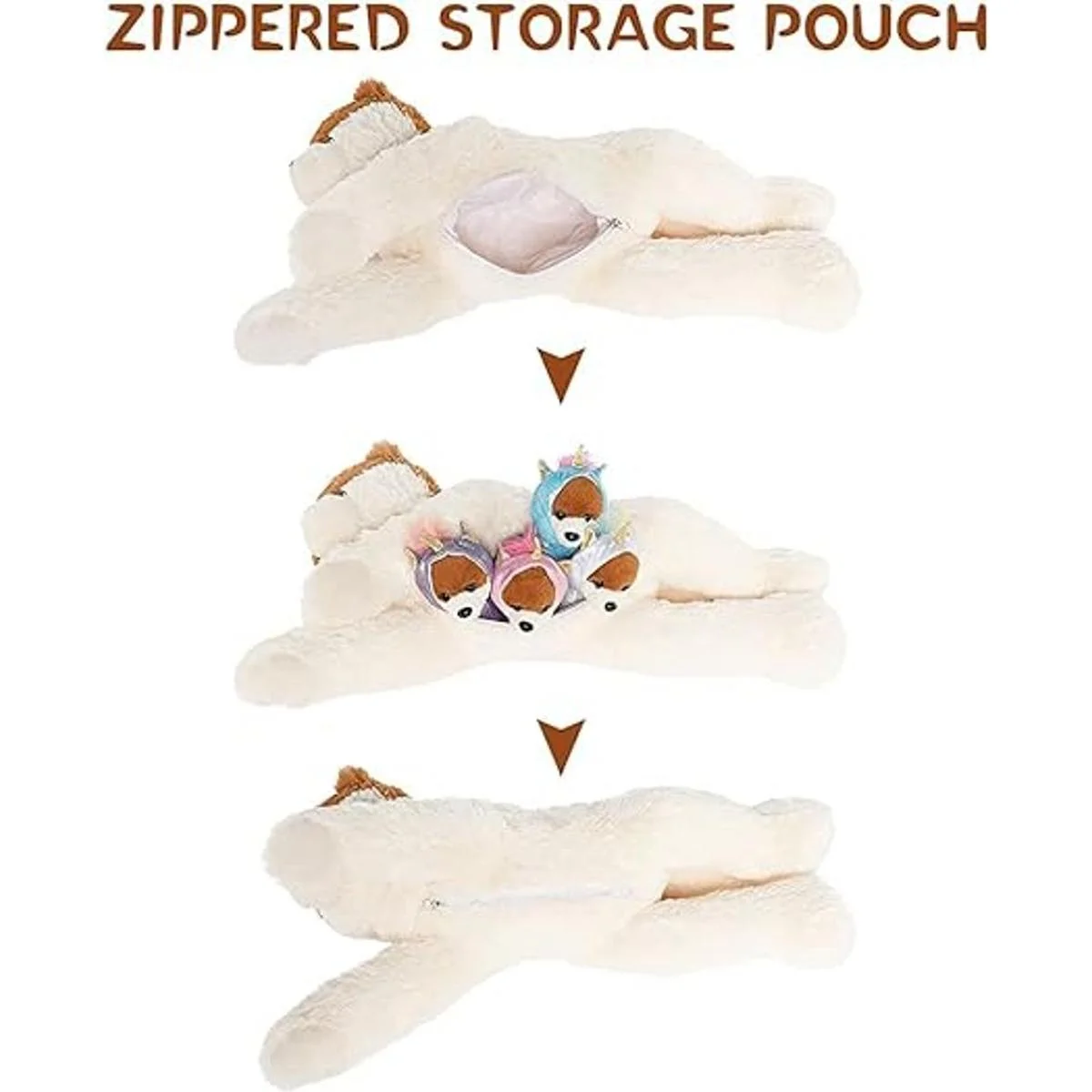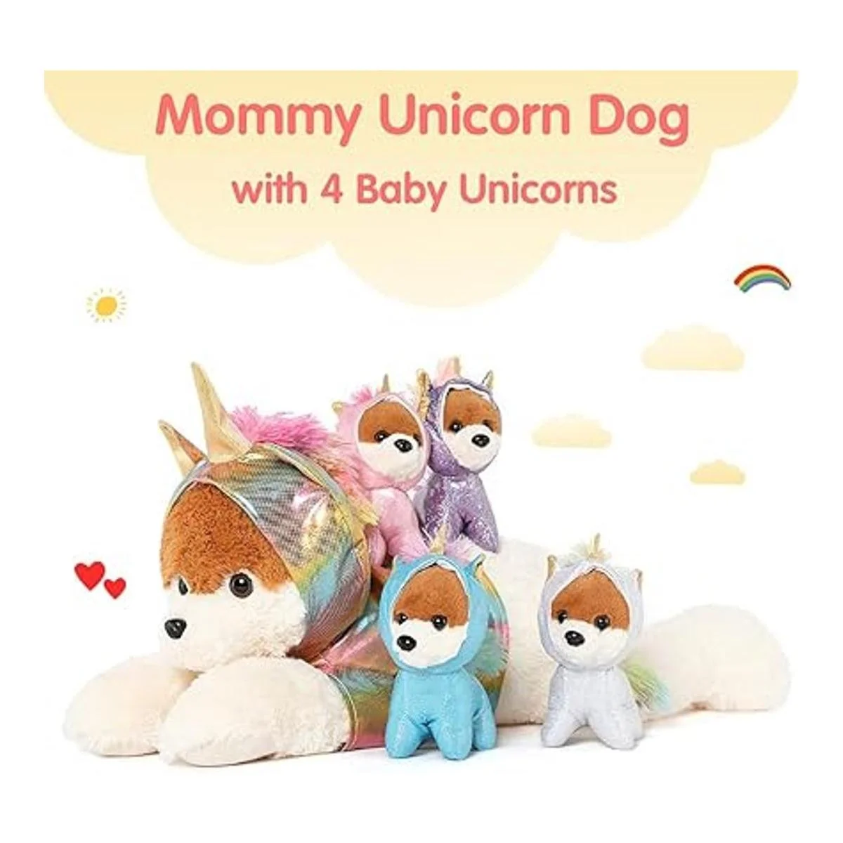 Diseño único: el abrigo de unicornio del unicornio de mamá se puede quitar, y luego puedes ver la cremallera en el vientre del animal de peluche del perro. Abre la cremallera y pon los cuatro unicornios de bebé dentro o fuera.