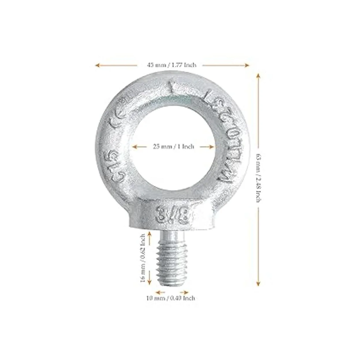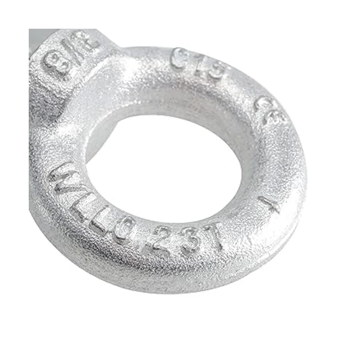 Resistente: el perno de 3/8 pulgadas tiene un anillo en un extremo y un tornillo roscado en el otro extremo. El perno de ojo está formado integralmente con un fuerte soporte para proporcionar una mejor seguridad y una retención más firme. Tiene un límite de carga de trabajo de 507.1 lbs que es lo suficientemente fuerte como para llevar cargas pesadas.