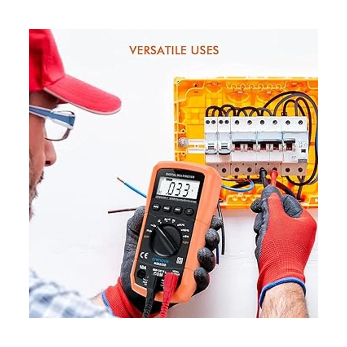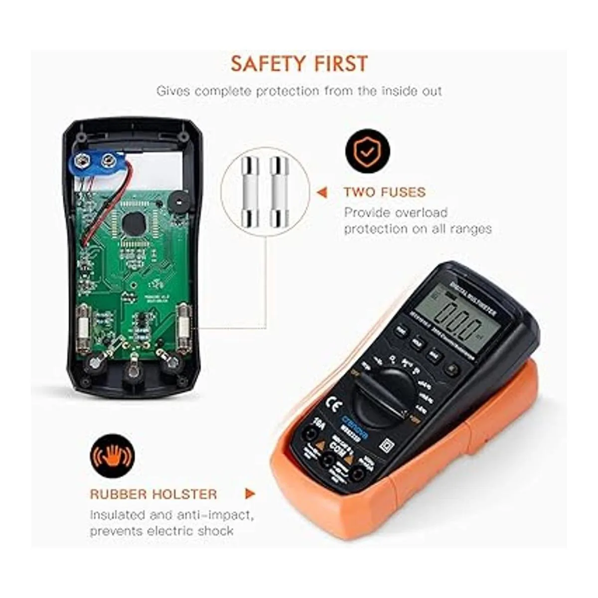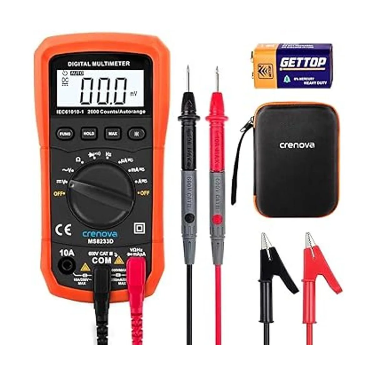 Multímetro digital con autorango Crenova MS8233D, instrumento de medición electrónica, detector de voltaje CA, medidor portátil de Amp Ohm Volt, multi tester cdiodo y escáneres de prueba de continuidad, para uso en el hogar, herramienta de mano electrónica con pantalla LCD de retro iluminación.