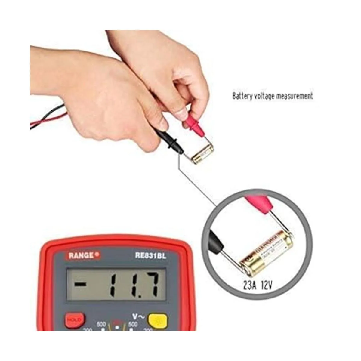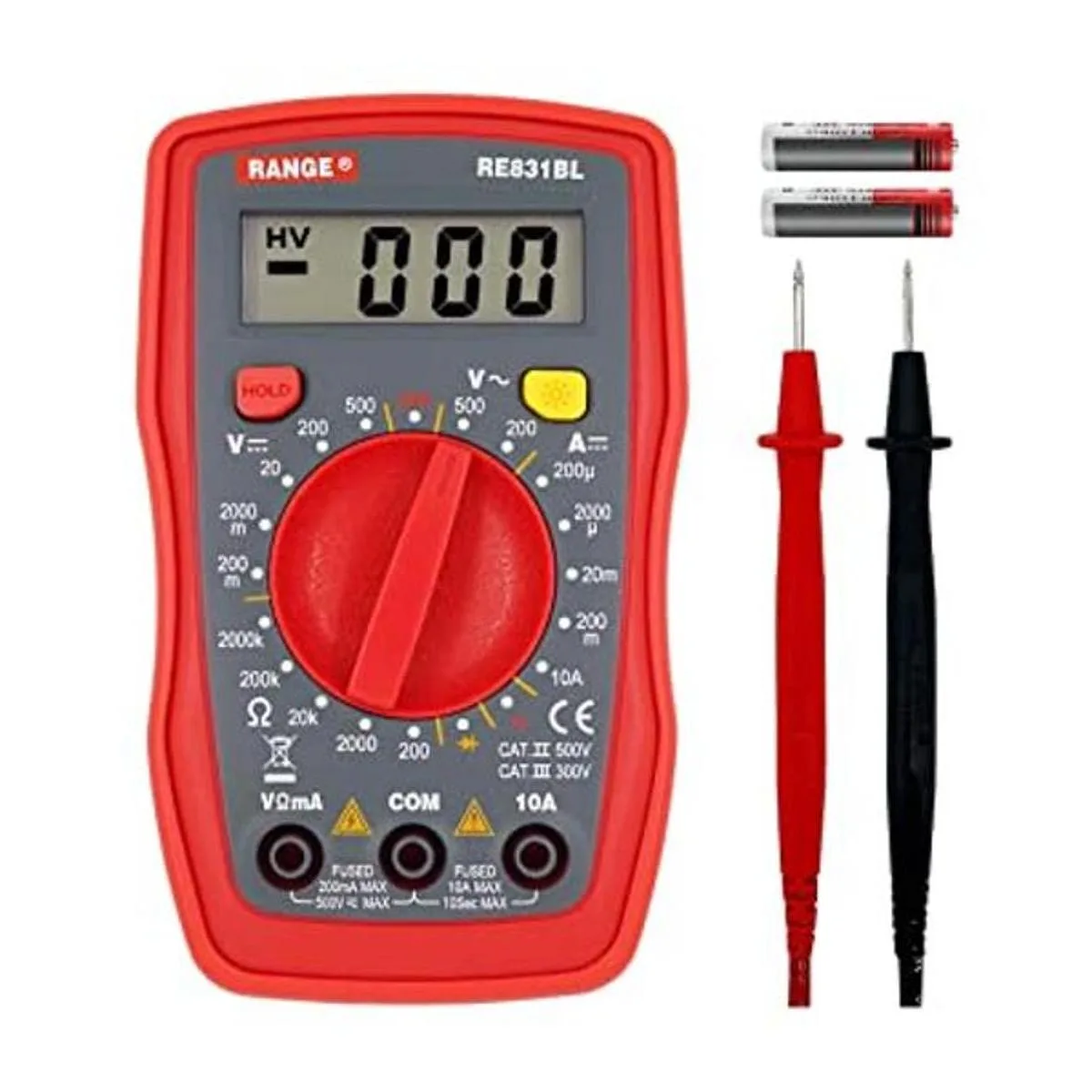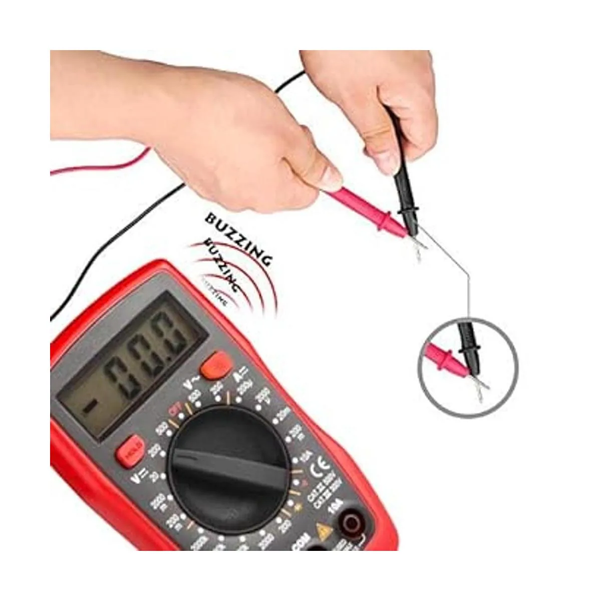 Multímetro digital de rango, probador de voltios, medidor de amperios de voltios y ohmios con continuidad, prueba de diodo y resistencia, doble fusible para antiquemaduras doble fusible para antiquemaduras, rojo