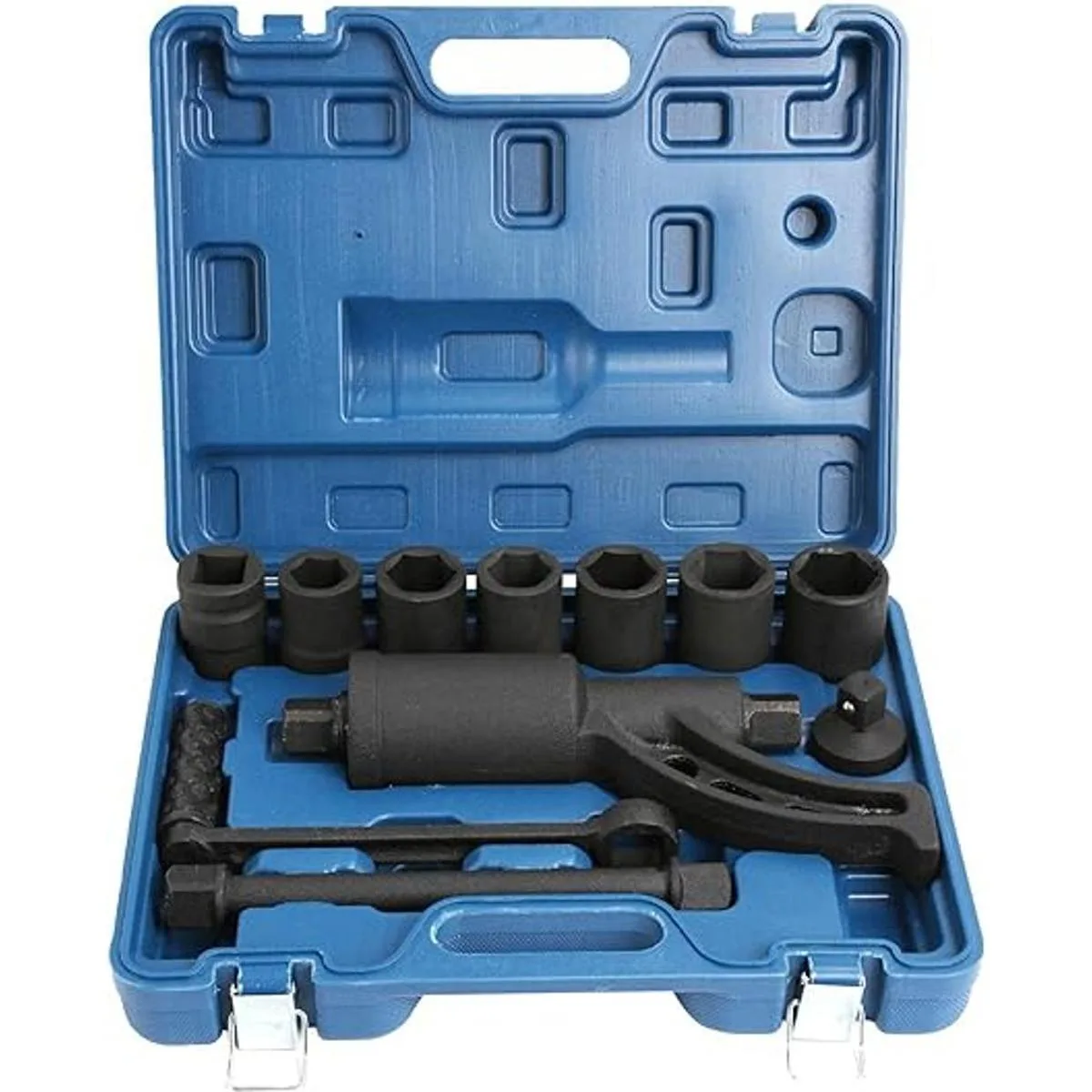 Contenido: 7 piezas Enchufe de impacto profundo longitud 2.953 in: 0.945 in, 1.063 in, 1.181 in, 1.260 in, 1.299 in, 1.417 in, 1.496 in; 1 llave 1 pieza barra larga; 1 pieza mango