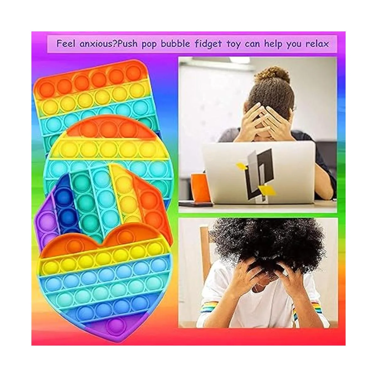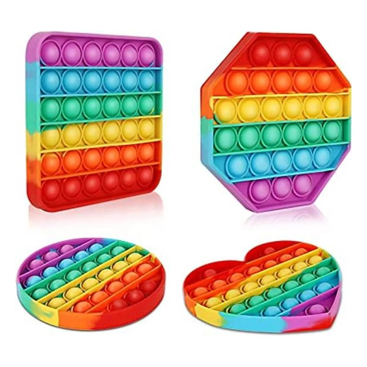 Multipurpose Paquete de 4 juguetes para ansiedad con diseño de arco iris, juguete sensorial de burbujas para niños y adultos, alivio del estrés, 4 formas de popperscorazón, círculo, octágono, alivio de la presión cuadrada