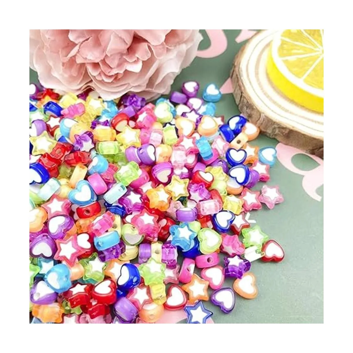 Materiales de alta calidad: nuestras cuentas sueltas en forma de corazón y estrella están hechas de material acrílico, con superficie lisa y duraderas para usar, son ligeras y fáciles de llevar, no tienen carga cuando las llevas.