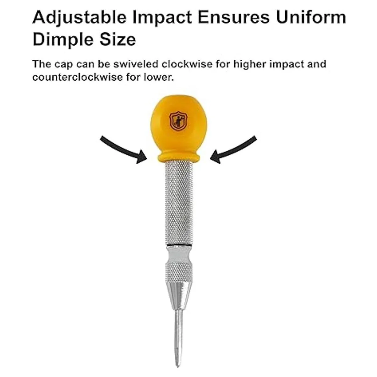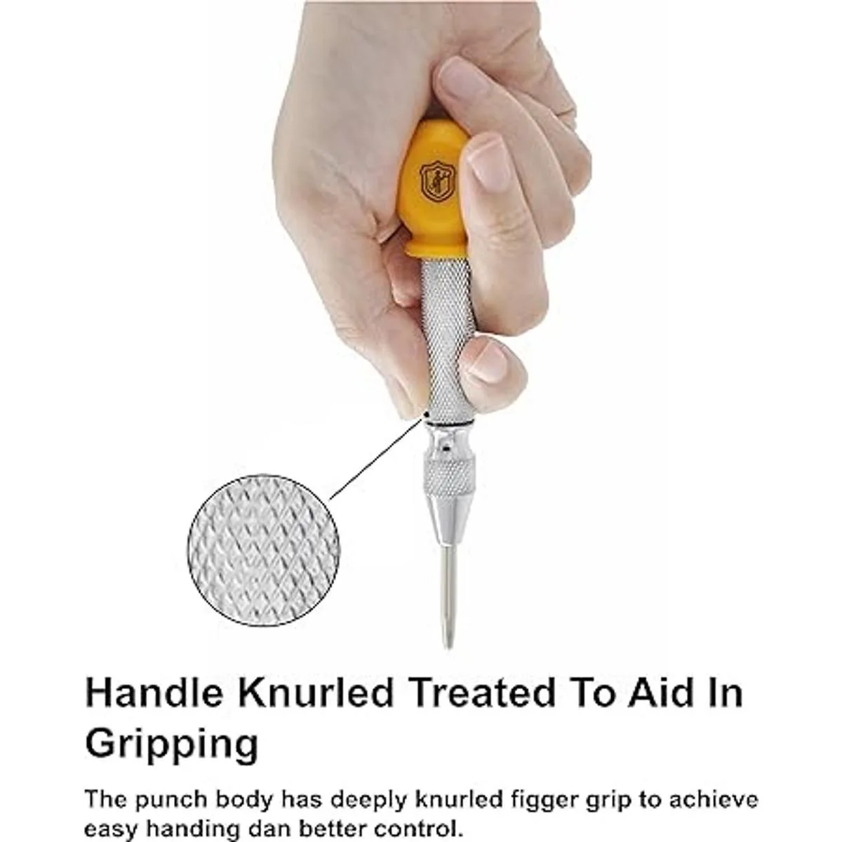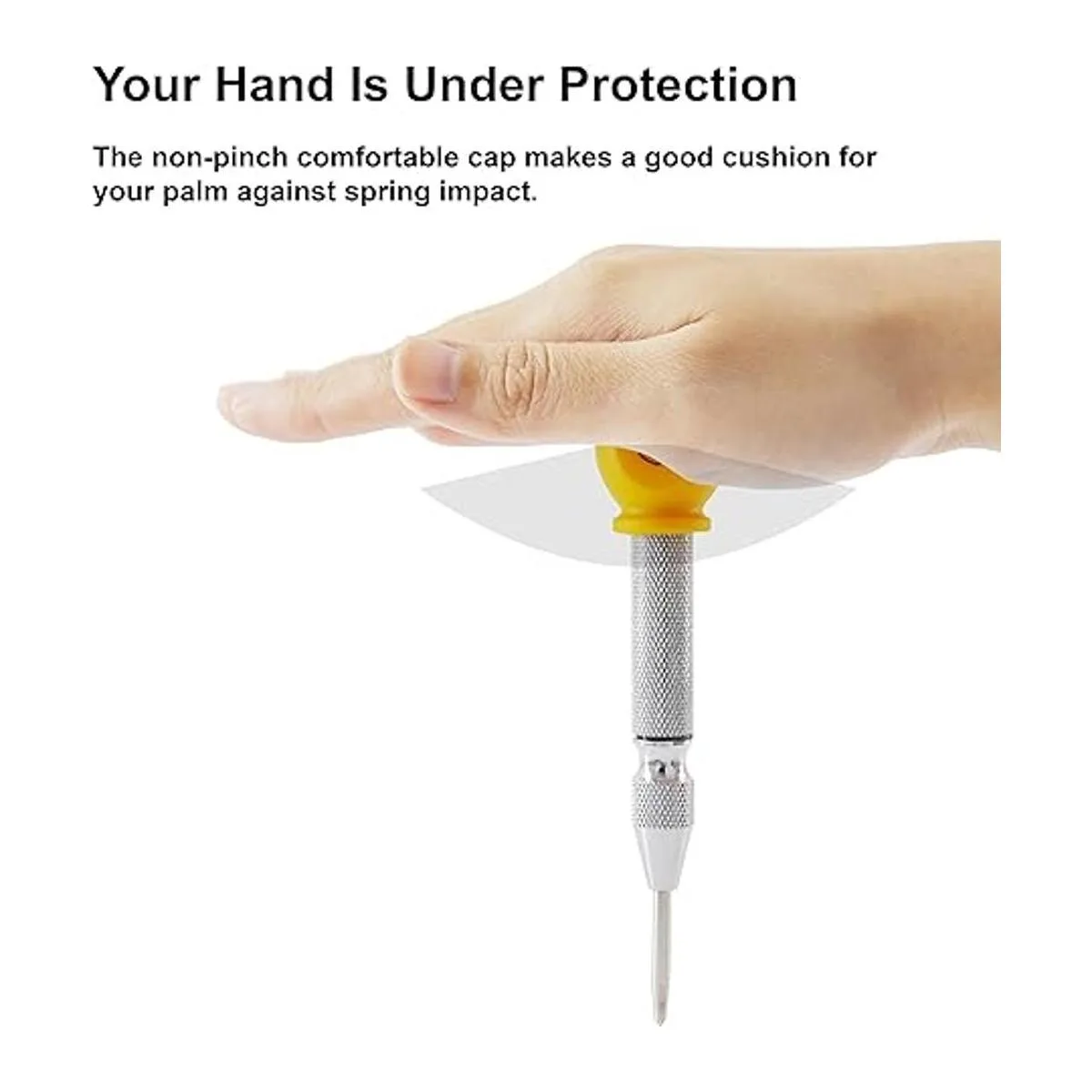 Fácil y práctico: marca un punto de partida con hoyuelos en superficies de metal, madera, vidrio, cuero o plástico, evita que las brocas y tornillos se muevan con una sola mano.