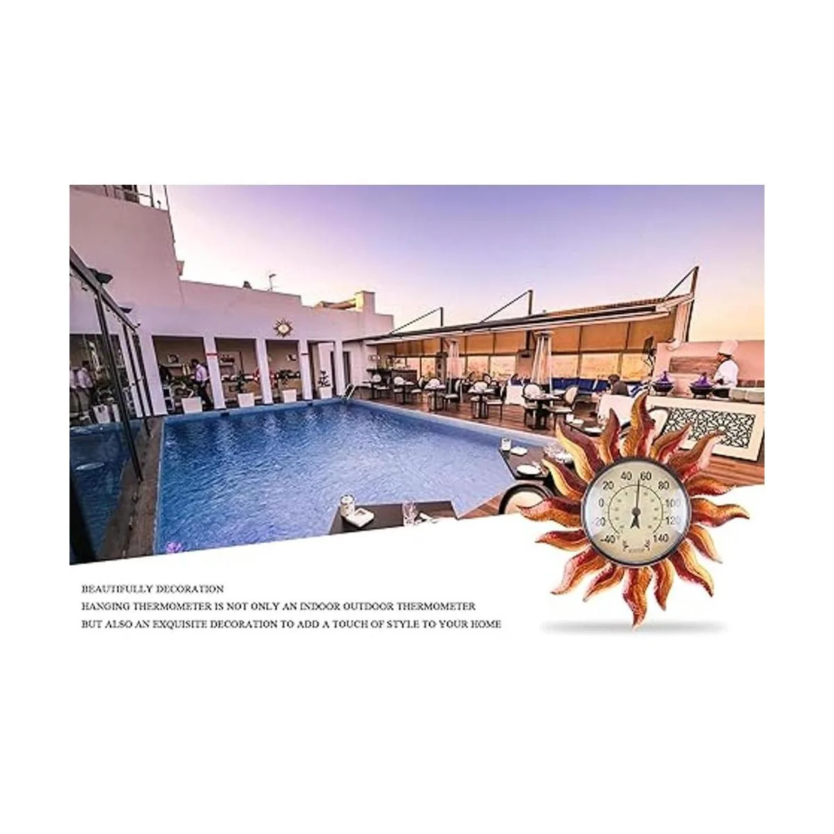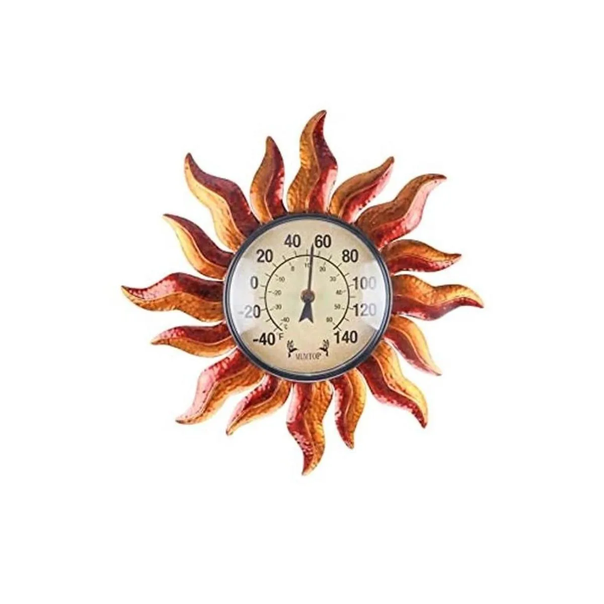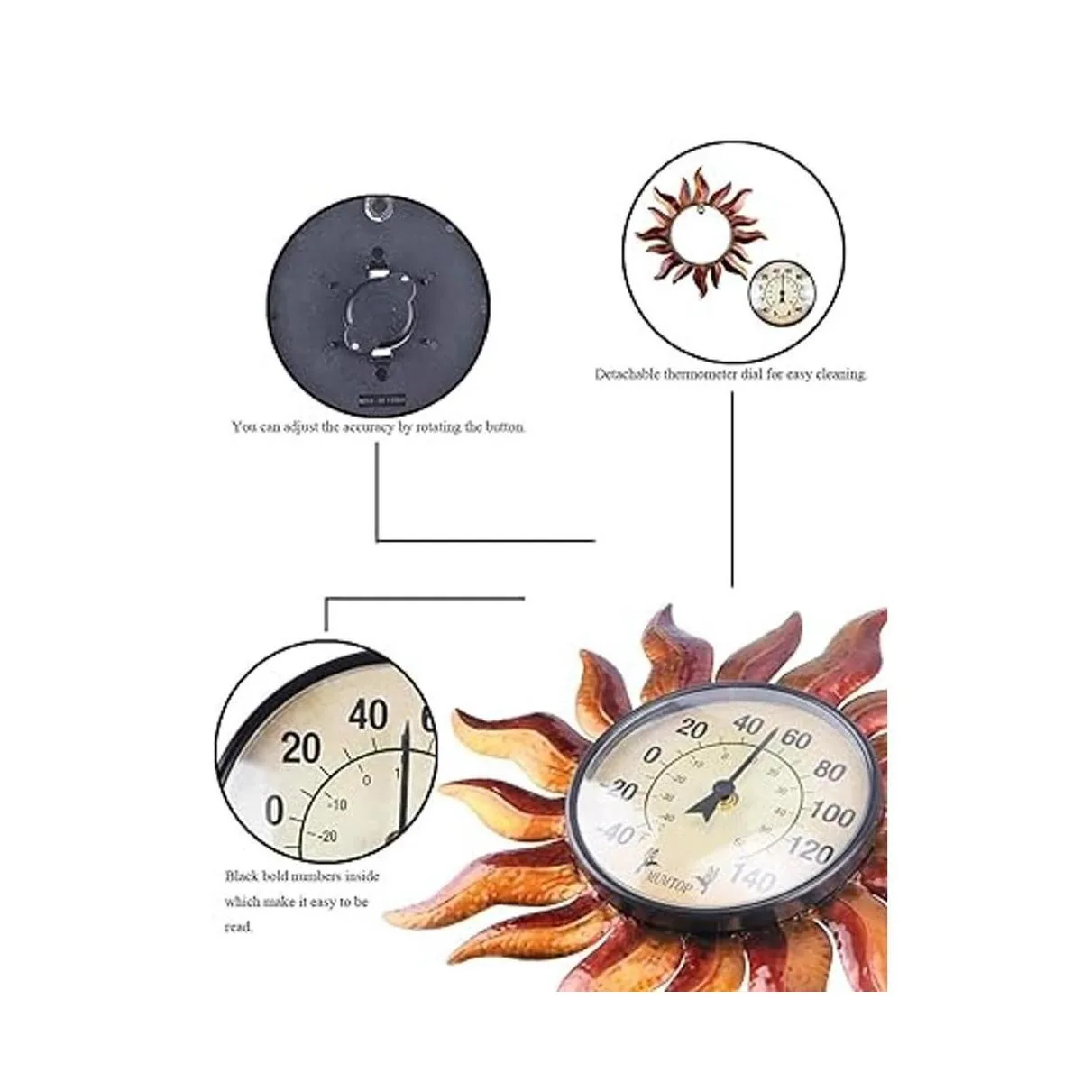 Los ganchos en la parte posterior y el diseño ligeramente impermeable hacen que el termómetro exterior sea decorativo adecuado para estudio, jardín, patio y cualquier otra ocasión, pero es mejor poner en aleros al aire libre o en el lugar que tiene protección, prolongar la vida útil.