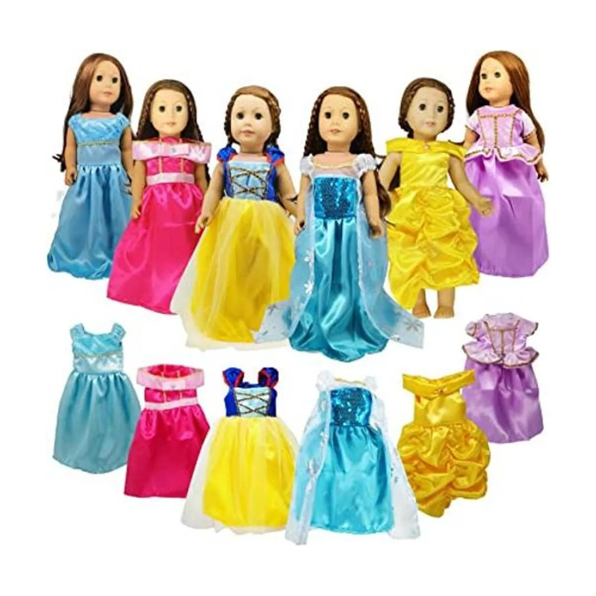 Muñeca americana de 18 pulgadas, disfraz de princesa de 6 piezas incluye Bella, Cenicienta, blanco nieve, Rapunzel, princesa Elsa y Aurora para muñecas de niña estadounidense, My Life As Doll