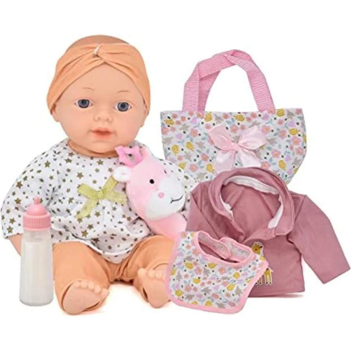 Muñeca de bebé con accesorios de juguete, botella de leche mágica desapareciendo de 14 pulgadas, muñeca de cuerpo suave con ropa, bolsa de pañales y babero