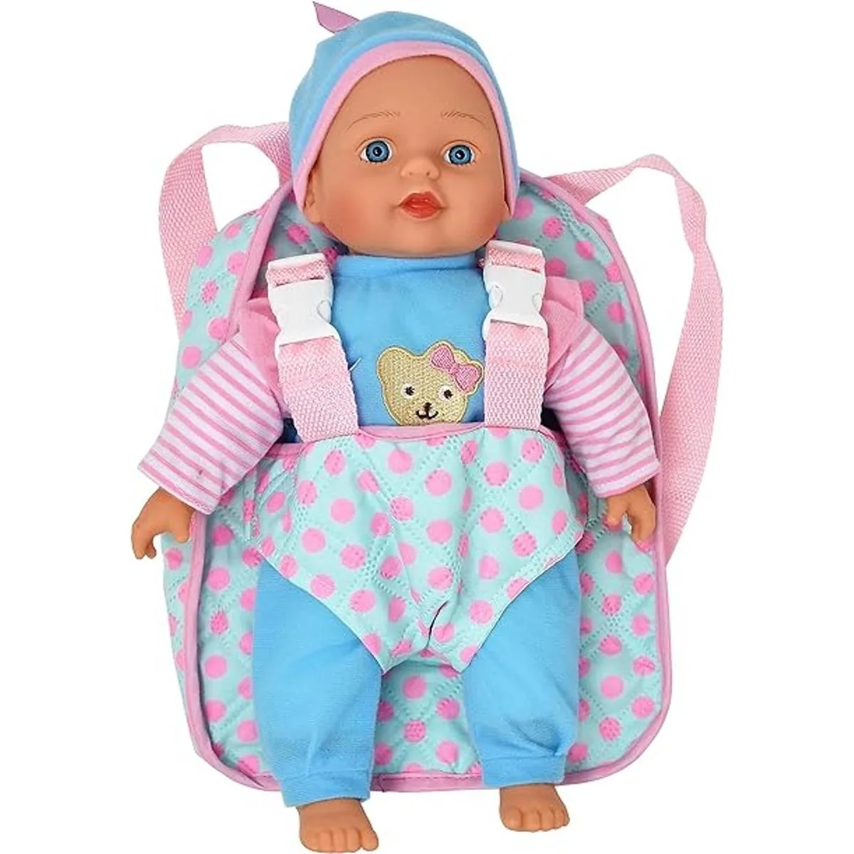 Muñeca suave de 13 pulgadas con mochila portadora de color rosado para la muñeca, el bolsillo del maletín se ajusta a los accesorios y la ropa de la muñeca.