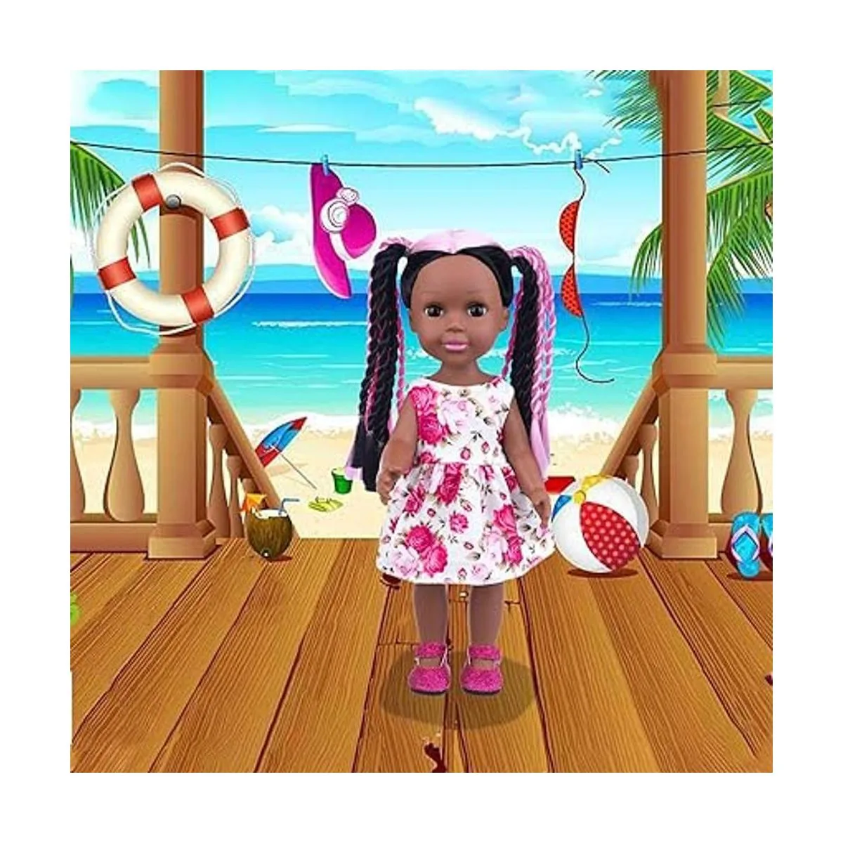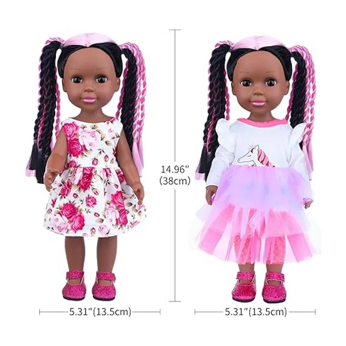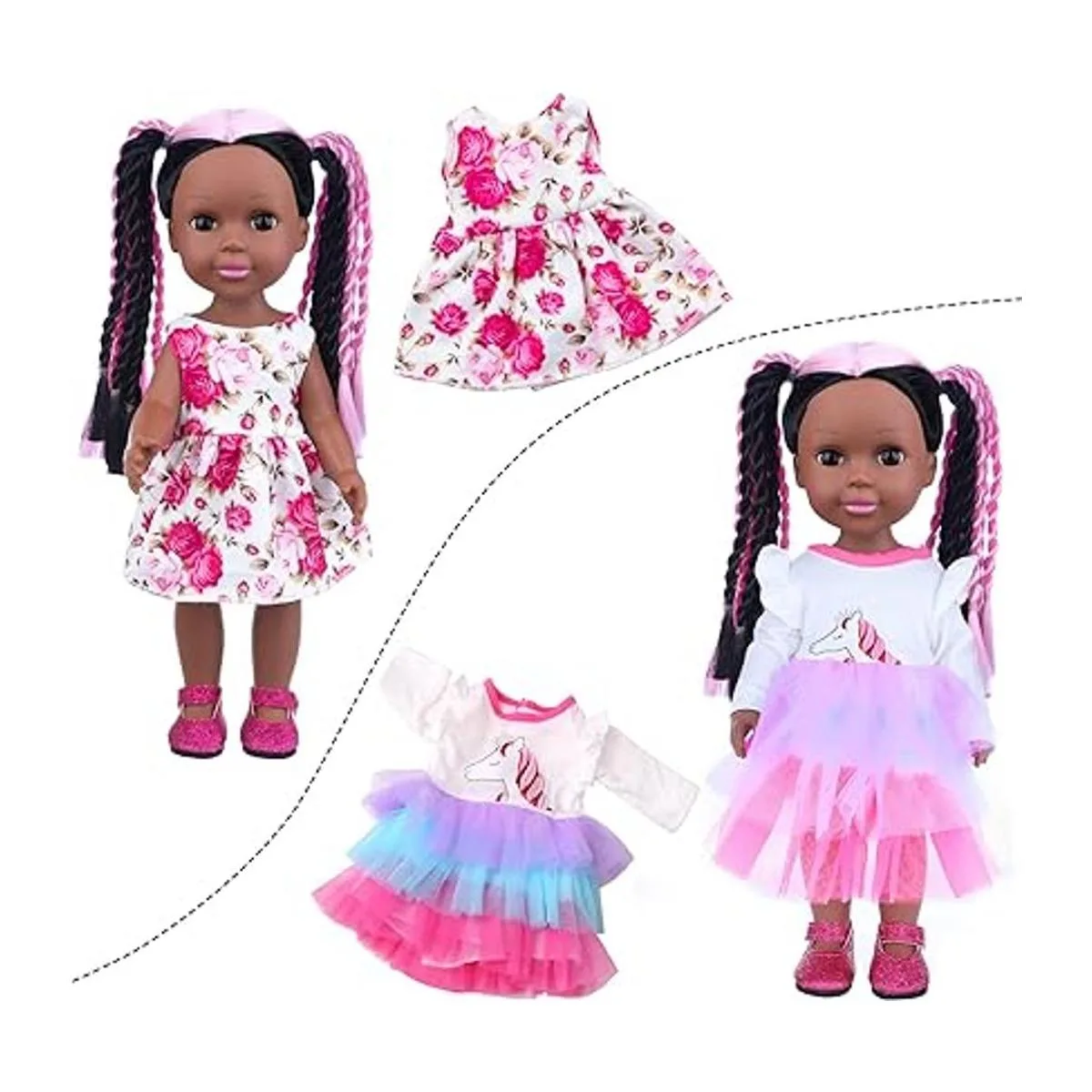 Muñecas negras y muñecas negras, juego de accesorios de ropa de bebé de 14.5 pulgadas, cabello trenzado hecho a mano, muñeca afroamericana, para niños de 2, 3, 4, 5, 6, 7 años, muñeca de juguete Reborn con ropa y zapatos