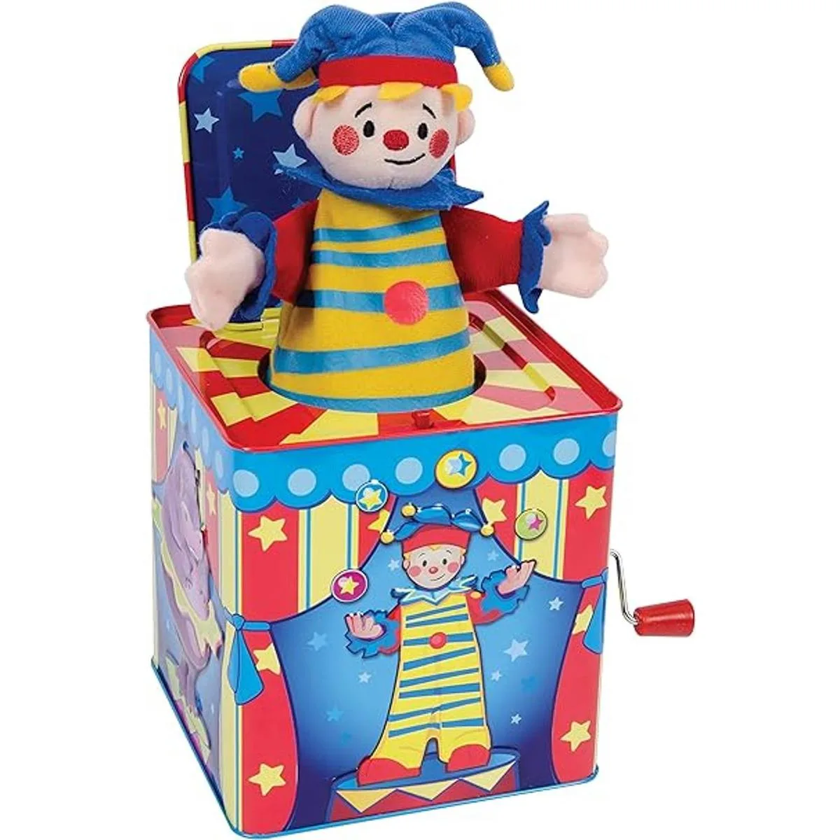 Este clásico juguete musical Jack in the Box con temática de circo traerá alegría y deleite a los niños durante generaciones