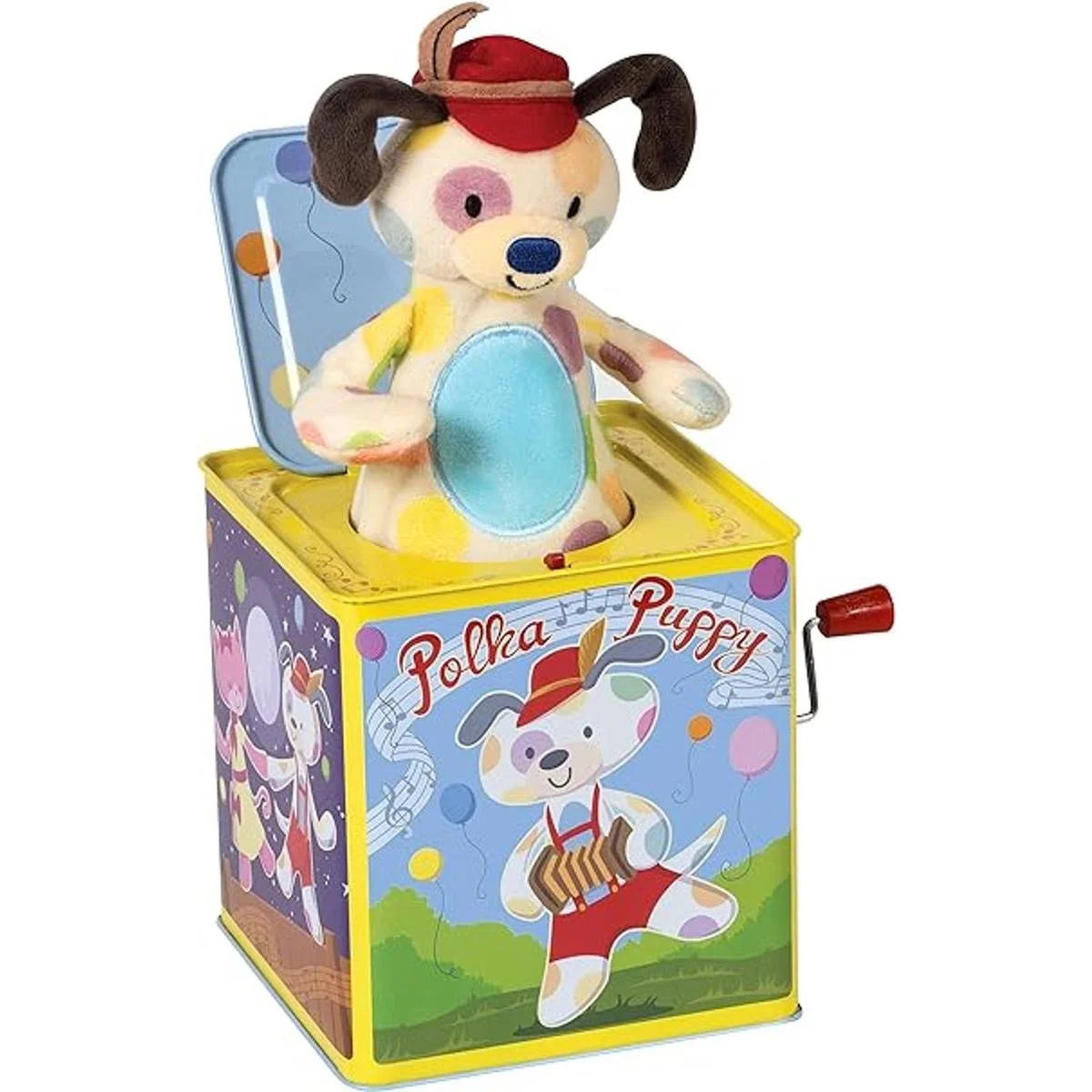 Muñeco en caja de sorpresas de Schylling, Puppy Dancing Jack in the Box, Multi Color