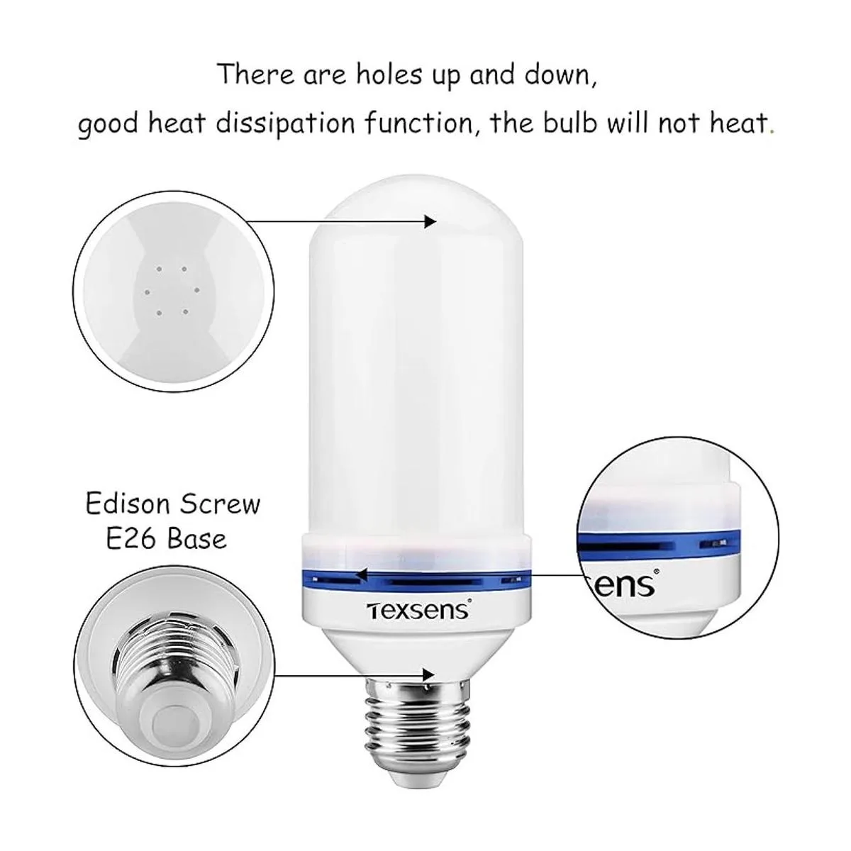 Munetoshi 3 bombillas LED de fuego E26 4 modos de luz de efecto llama, decoración de lámpara vintage