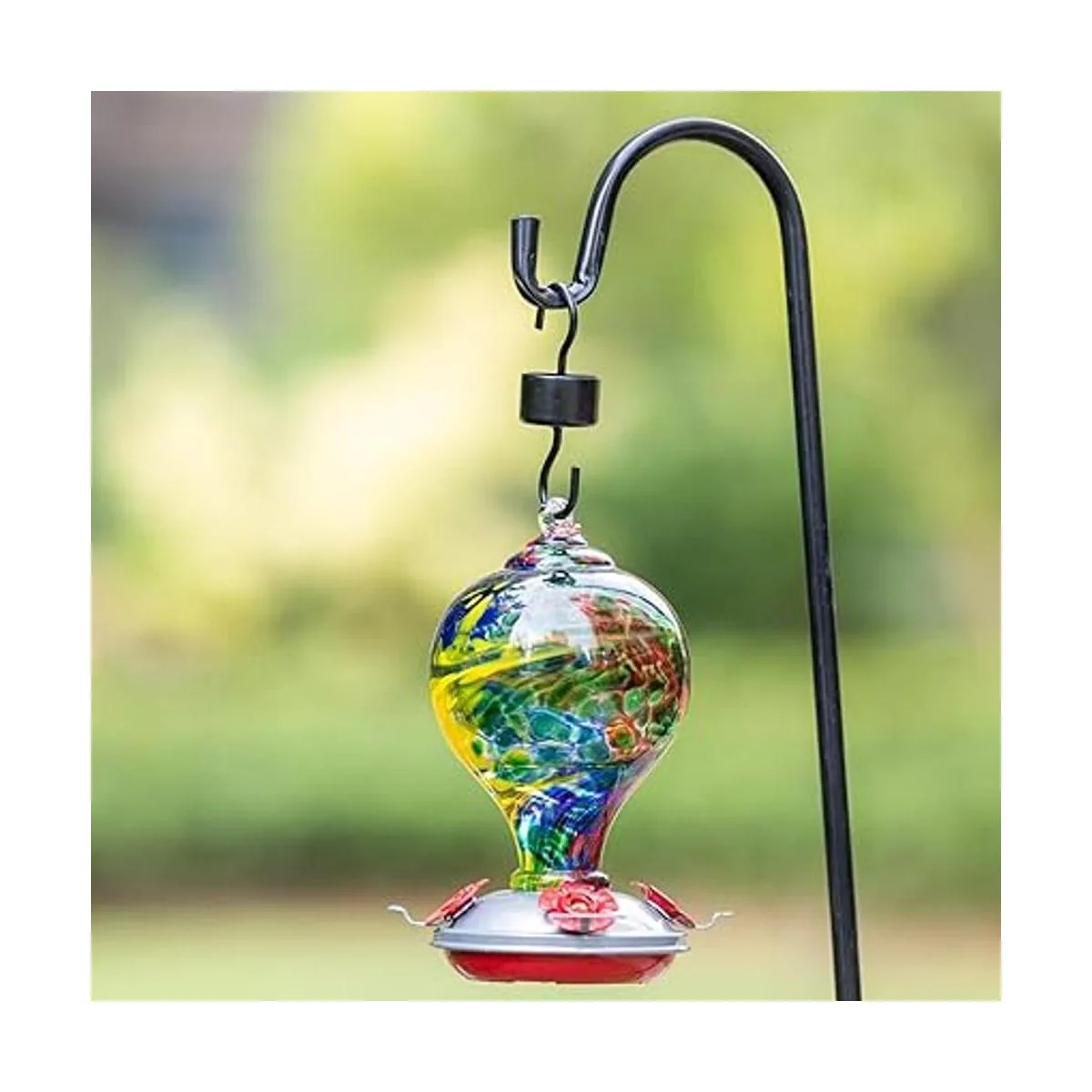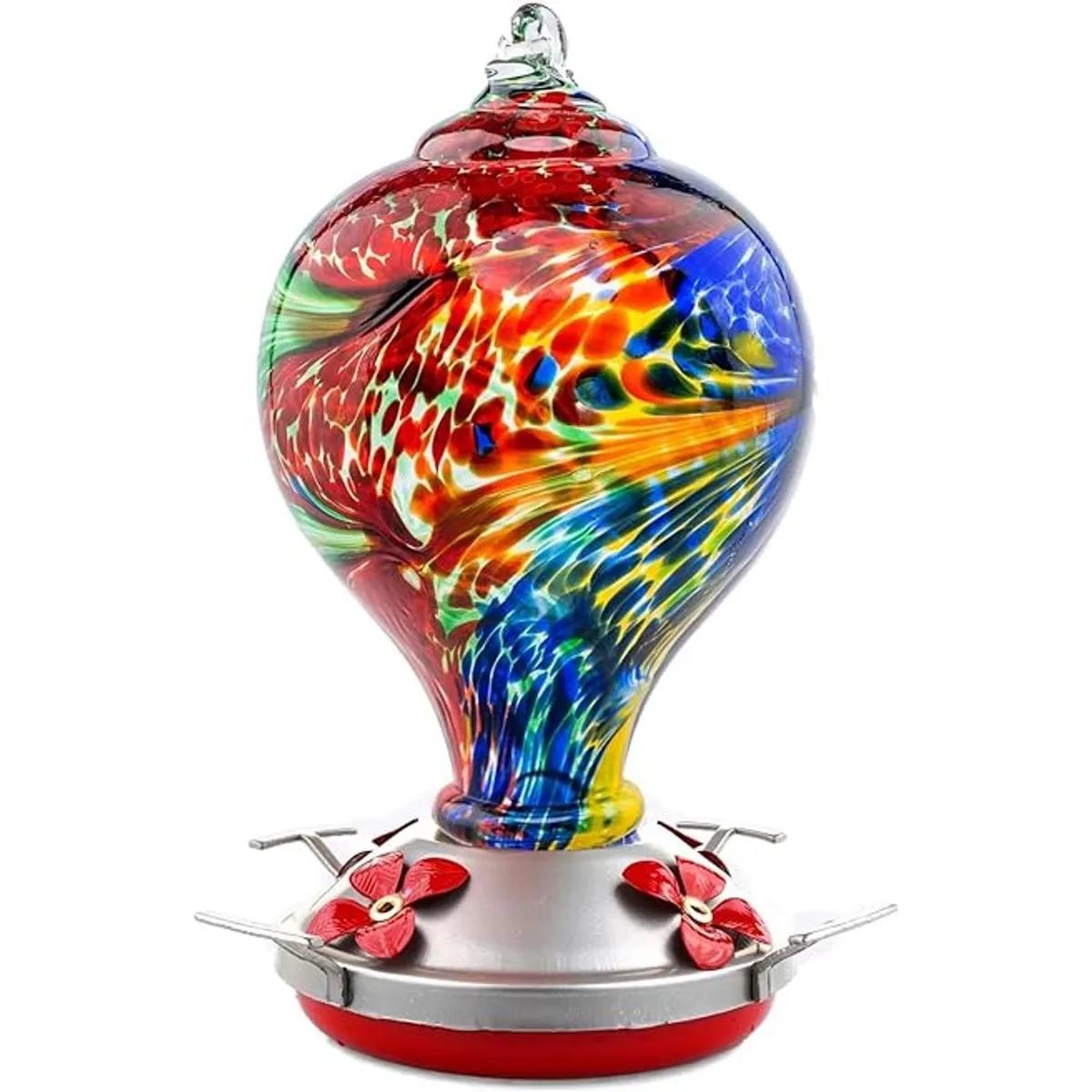 Muse Garden Comedero para colibríes para exteriores, vidrio soplado a mano, 32 onzas, que contiene foso para hormigas, Nebula